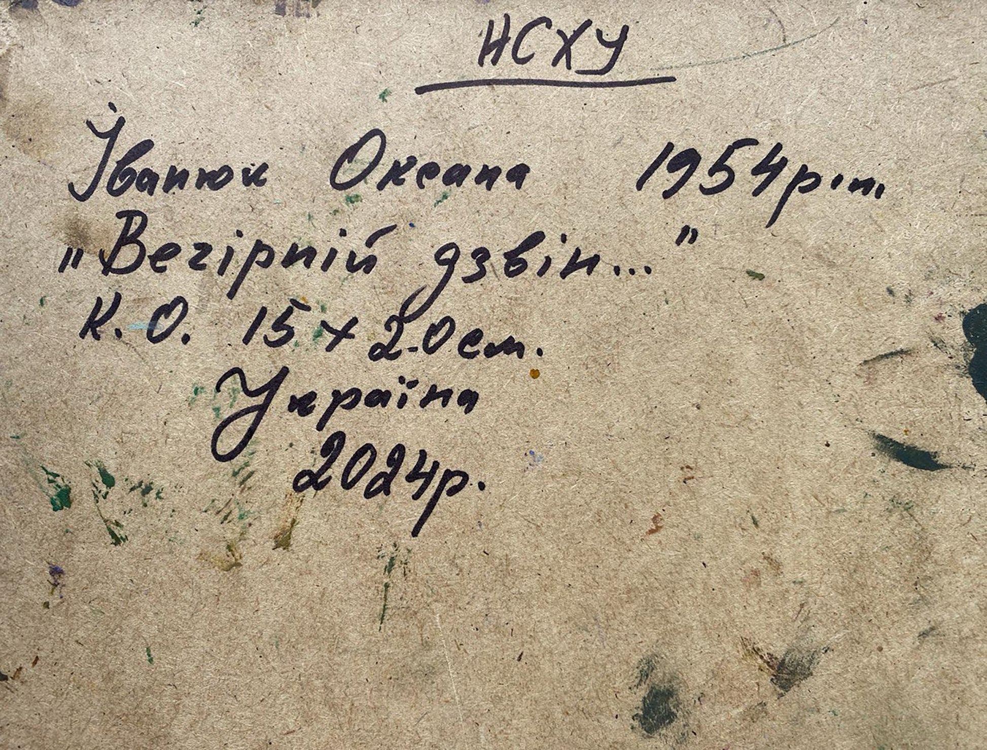 Ivanyuk Oksana works in the landscape and still life genre. Personal exhibitions: Kyiv, Museum of Ukrainian Heritage; T. Shevchenko National Museum; the diplomatic mission of Ukraine to the USA (California) and others. She has participated in numerous exhibitions both in Ukraine and abroad.