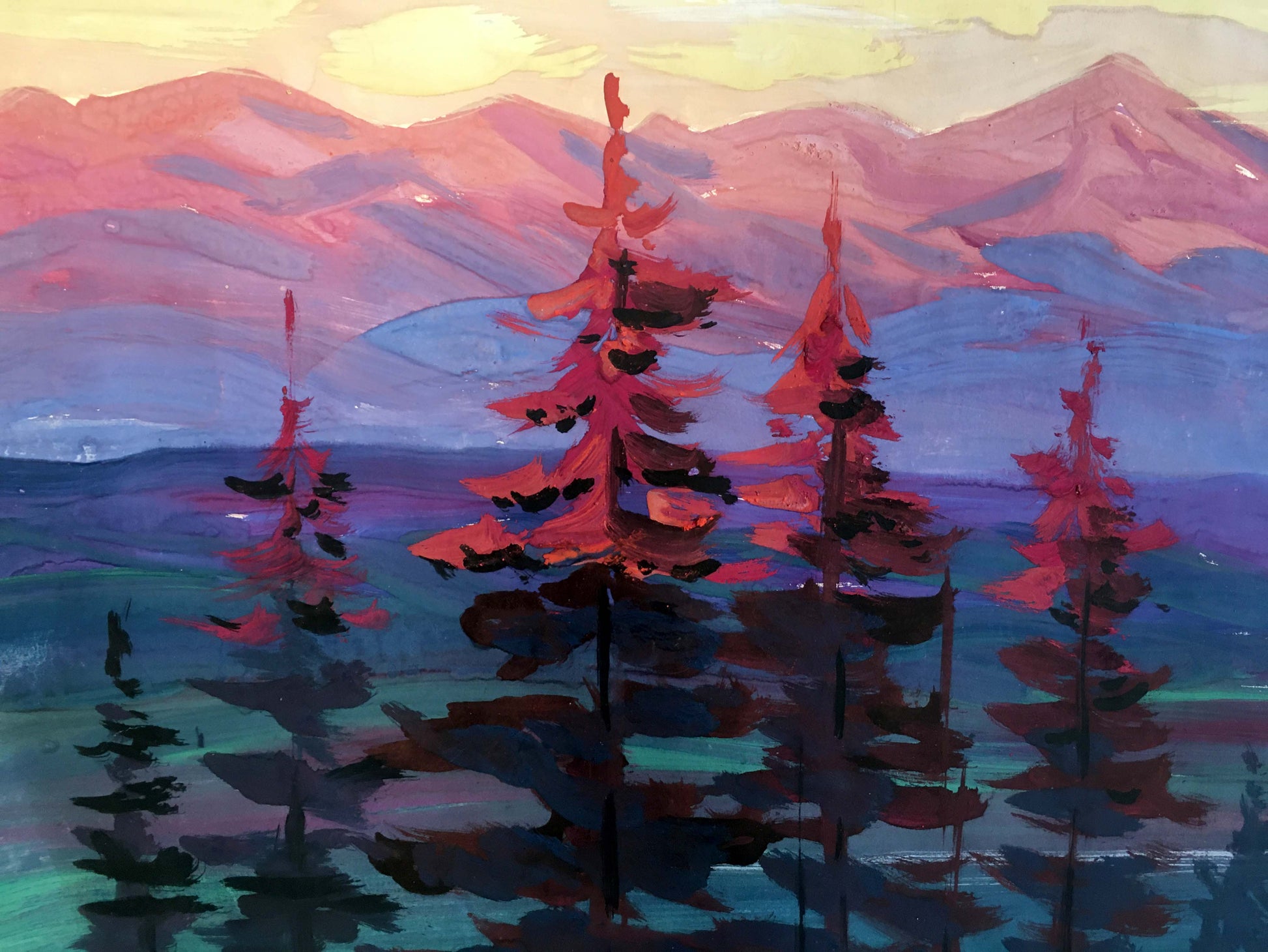 Oil painting Evening mountain landscape Shary Anatoly Ivanovich
