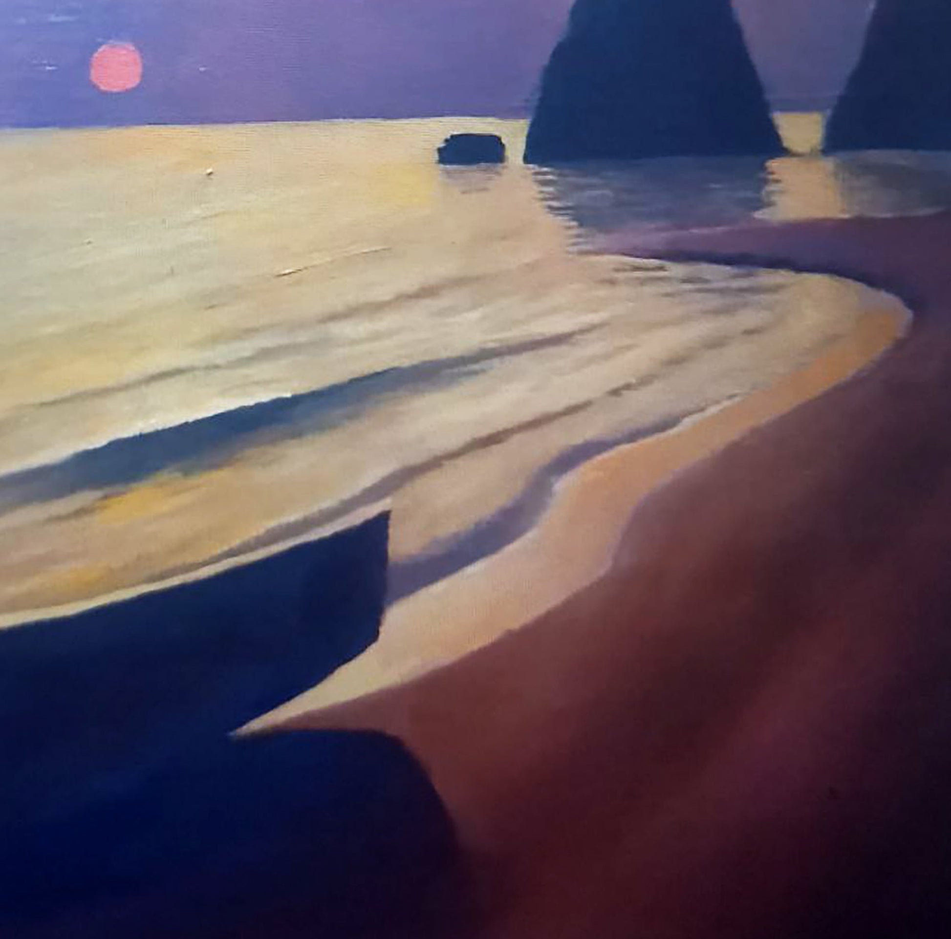Through subtle color transitions and gentle waves, Strashevich expresses a sense of calm and introspection. This piece symbolizes the end of a day, inviting the viewer to reflect on moments of solitude and peace found in nature’s fleeting transitions. It captures both the beauty of simplicity and the emotional depth of quiet evenings by the sea.