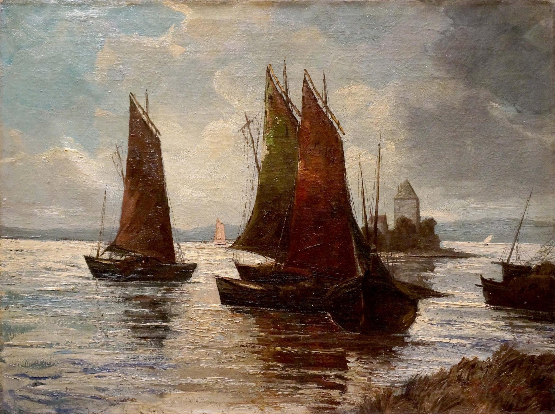 Oil painting Fleet of ships Woseker A.
