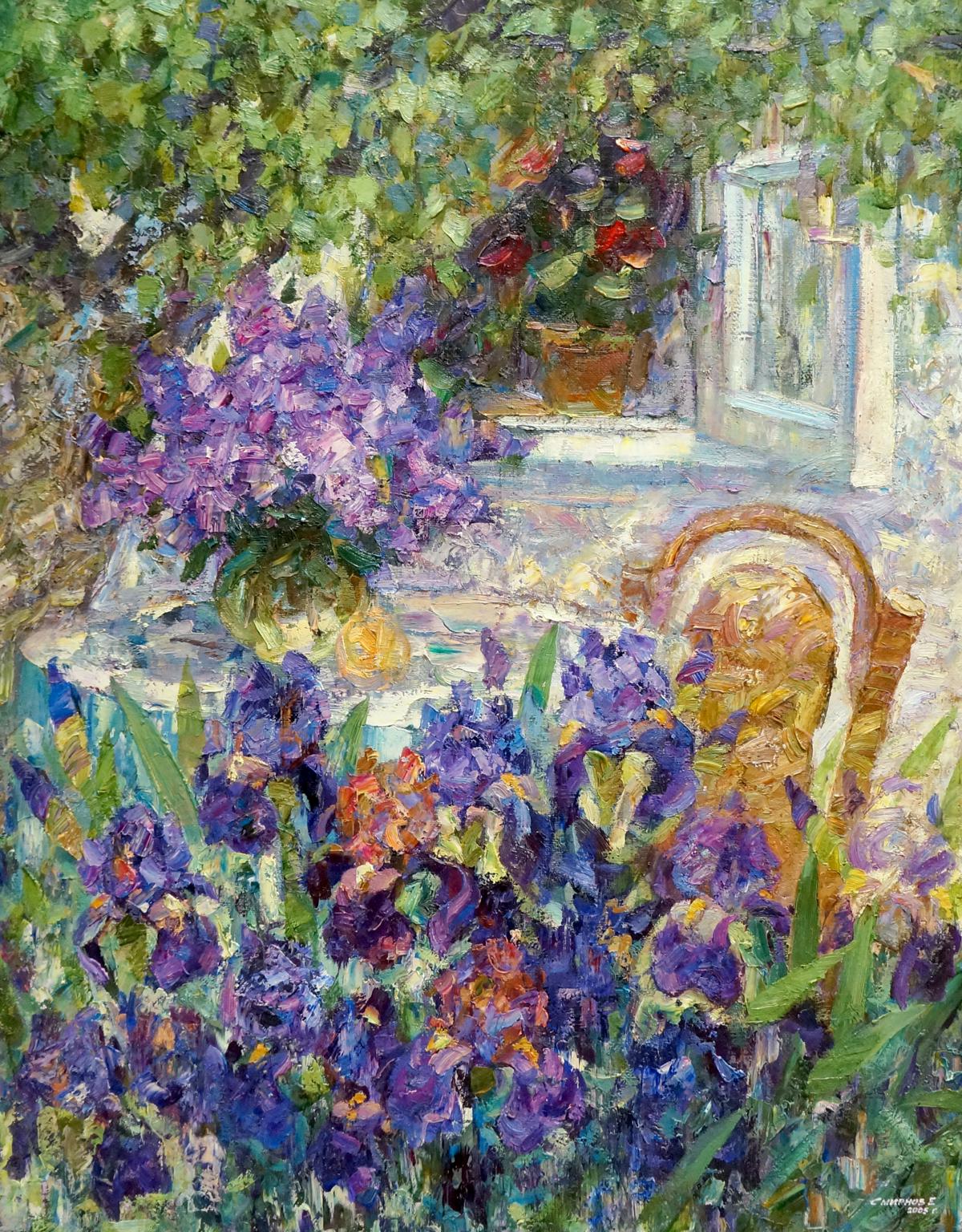 Oil painting Flowering yard Smirnov Evgeny Vladimirovich