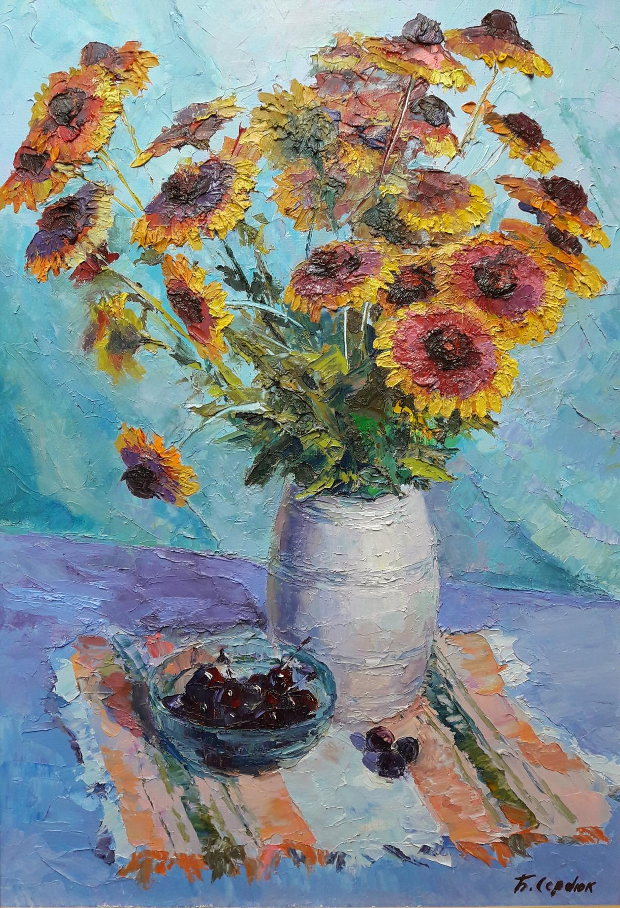 Oil painting Flowers and Cherries Serdyuk Boris Petrovich