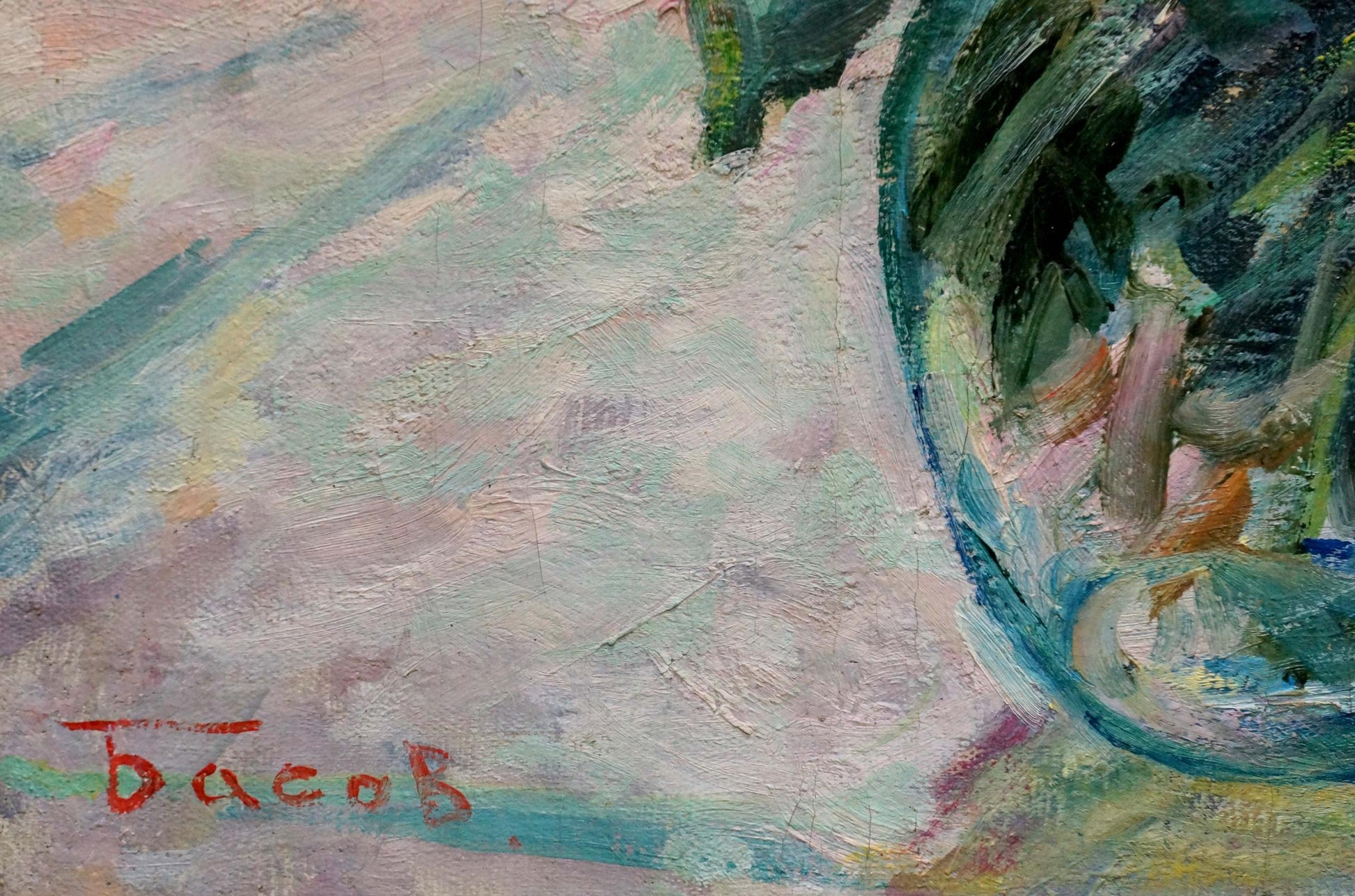 About the artist: Born February 2 (January 20?) 1914 in Simferopol. Studied at the studio of N. Samokish in Simferopol (1922-1931), at the All-Russian Academy of Arts in Leningrad (1931 - 1937). Teachers by profession - M. Samokisha, V. Shukhaev, I. Brodsky. He worked in the field of easel graphics and painting, mainly in the genre of landscape, in particular, marine. Member of the National Union of Artists (1958). Honored Artist of the Ukrainian SSR (1978). Laureate of the State Prize of the Autonomous Republic of Crimea (1997). People's Artist of Ukraine (2004) Member of the CPSU. Member of the Great Patriotic War. Awarded with a medal. Participated in exhibitions: republican since 1949, all-Union since 1955, personal - Kiev, 1955, 1956; Leningrad, 1960, 1963, 1964; Yalta, 1954, 1961, 1963; Simferopol, 1961, 1964. Major works: series of watercolors - landscapes of the Crimea (1955 - 1962); Kiev (1963); Baltic states (1960 - 1963); Leningrad (1962 - 1965); "My Ukraine" (1969); "The Sea" (1948), "In Peaceful Days" (1953), "Evening on the Road" (1955), "Autumn in the Vineyards" (1956), "Almond Blossoms" (1968), the series "Homeland" (1970), "Seiners" (1974), "Stormy weather" (1975), "Taurida" (1989), "Silver day" (1990), "Boats" (1991), "Morning" (1992), "On the expanses of the Crimea", "Evening Sea" (1993), "Sunny Yalta" (1994); cycles of watercolors - "Rural motives" (1962), "In the North" (1964), "Lviv" (1965), "My Ukraine" (1969), "Spring in Ukraine" (1971), "Sevastopol" (1972), "Fishing Kerch" (1974), "Spring Land" (1977), "Black Sea", "Yakutia" (1978), "Ukraine Land" (1980), "Kiev Today" (1982), "Yalta - a City by the Sea "(1987)," Land of Taurida "(1991)," Seasons "," Spring in the South "," Bakhchisarai "(1995)," Spring in the Crimea "(1999). The works are kept in the National Art Museum of Ukraine. In Alupka (Autonomous Republic of Crimea) the city museum of the artist Basov was opened (1997). He died in 2004.