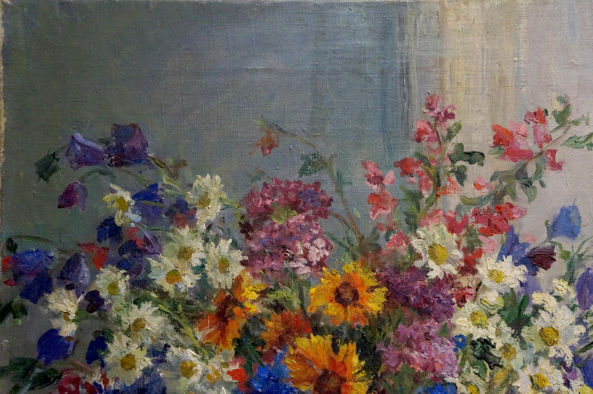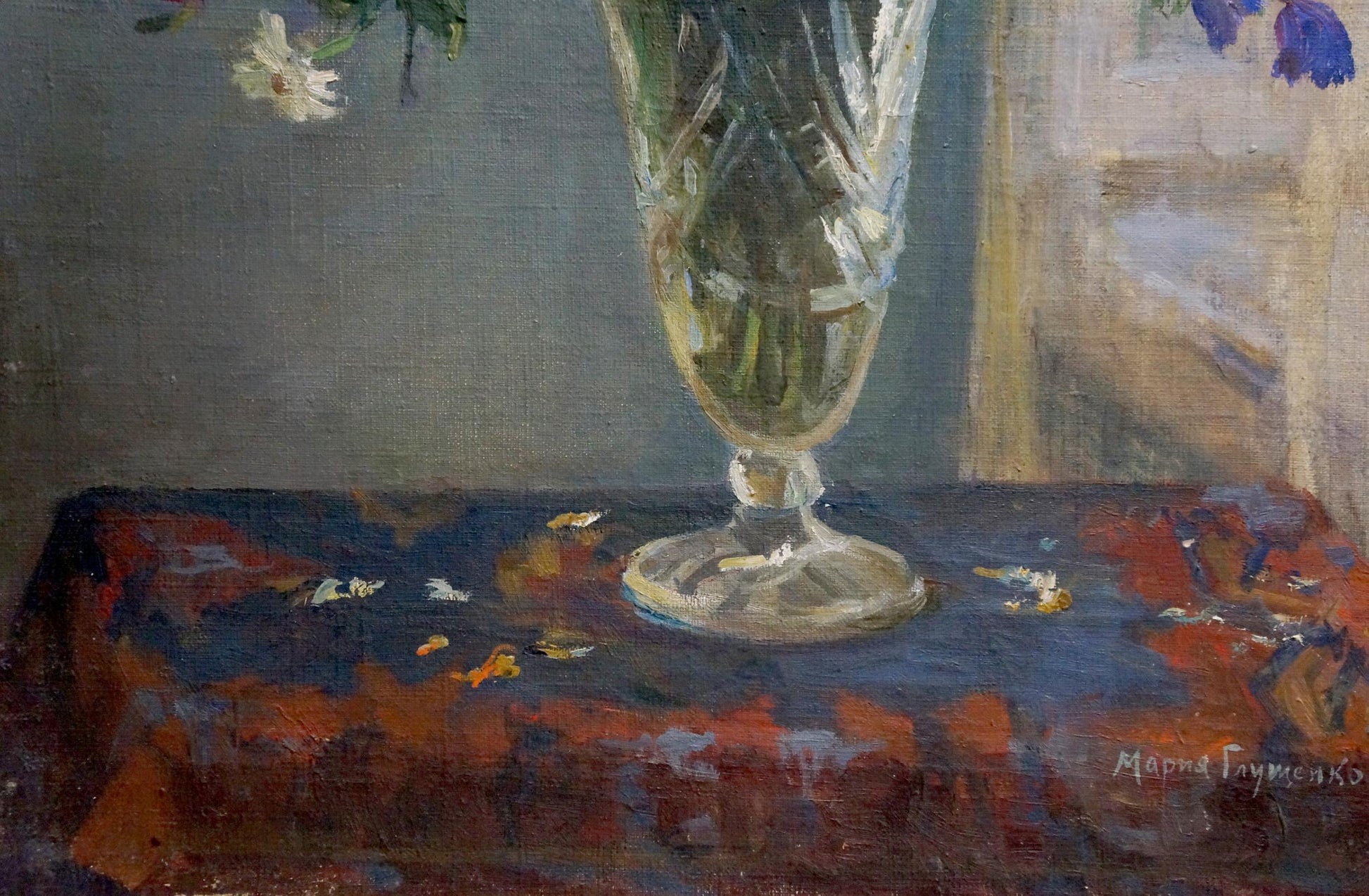 About the artist: Born September 23, 1905 in the city of Orhei, now Moldova. He graduated from the Chisinau art school (1925), studied in private studios in Berlin (1924-1926) and Paris (1926-1929). Painter, master of artistic weaving, embroidery and ceramics. He worked in the field of easel painting and decorative arts (artistic textiles, embroidery, ceramics). Member of the Union of Artists of Ukraine (1945). Participated in exhibitions: republican (1946), all-Union (1957), foreign (1938). Major works: carpets, tapestries, decorative fabrics, decorative tableware; still lifes "Asters" (1956), "Peonies" (1958) and others. Lived and worked in the city of Kiev, died on October 22, 1989.