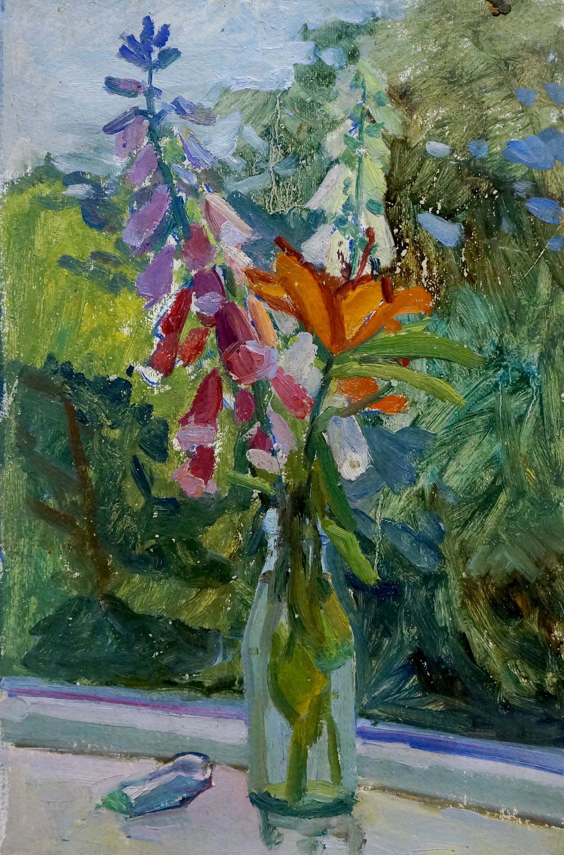 Oil painting Flowers in a bottle
