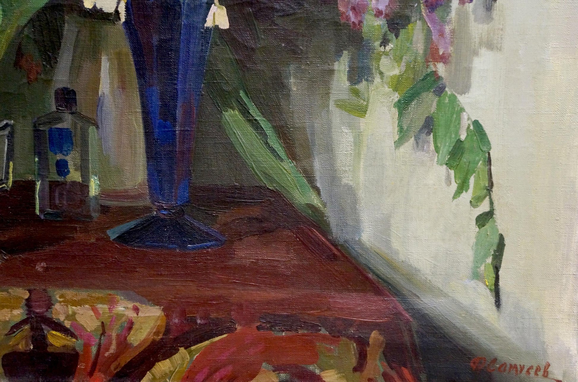 One of the first large-scale exhibitions in which F.A. Samusev took part, there was an exhibition of works by Ukrainian Soviet artists, dedicated to the Day of the miner. It was opened on August 31, 1952 in Donetsk, in the cinema named after T. G. Shevchenko. Ninety-one artists participated in it, including the mentor of Fedor Samusev - Alexey Shovkunenko. In total, one hundred fifty-two works were exhibited at the exhibition.