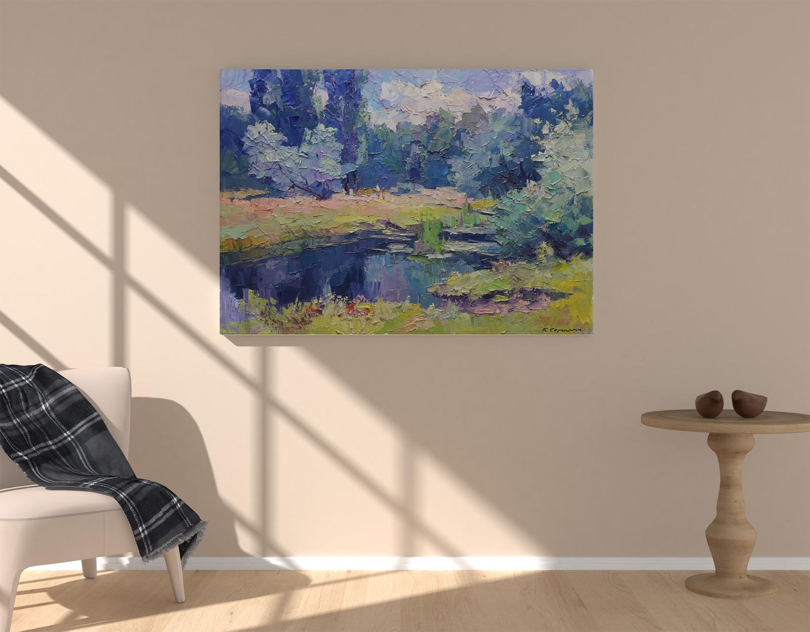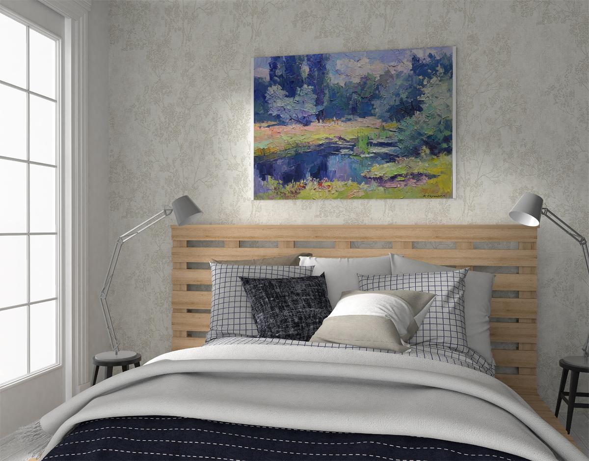 Looking for a creative and interesting oil painting that will add a touch of beauty to your home? Look no further than "Forest lake"! This stunning painting features a lake in the middle of a forest, with a path leading up to a glade on the shore. The colors are absolutely beautiful, and the painting is sure to add a touch of elegance to any room. Order your very own "Forest lake" today!