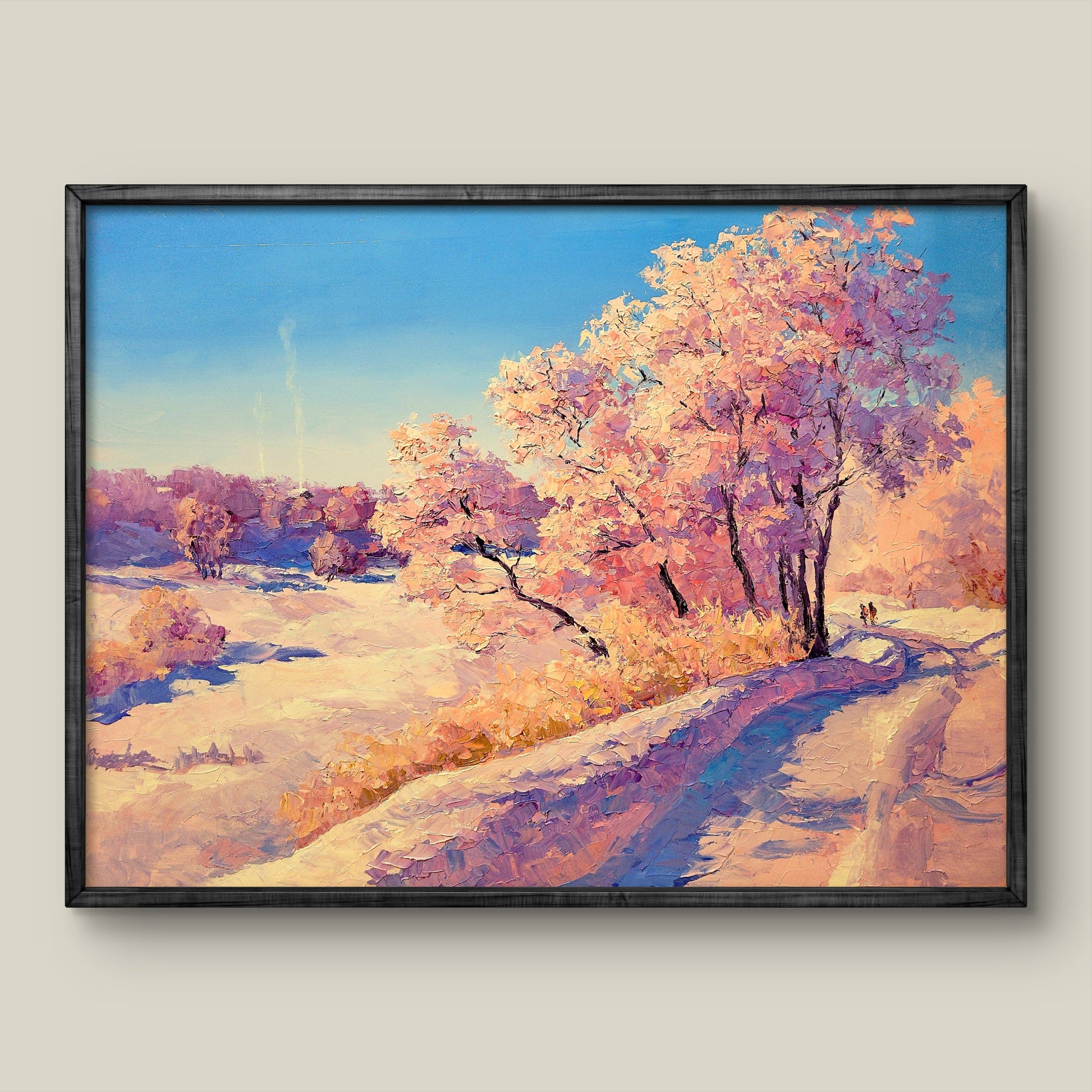 "Frosty Morning" is more than a painting; it is an invitation to pause, reflect, and admire the understated beauty of nature in winter. The color scheme, with warm tones juxtaposed against cold shades, and the soft transitions between colors, imbue the work with a sense of peace and tranquility. This piece stands as a testament to the artist's ability to capture the soul of winter in a canvas.