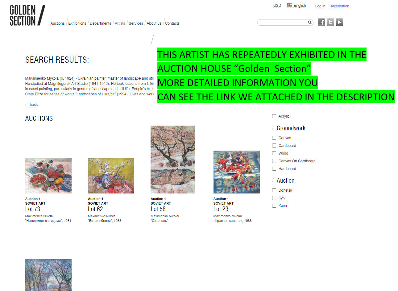 THIS ARTIST HAS REPEATEDLY EXHIBITED IN THE AUCTION HOUSE “Golden Section”