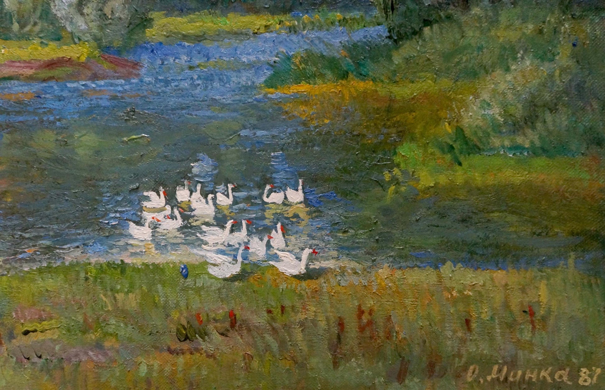 Oil painting Geese by the river Mynka Alexander Fedorovich