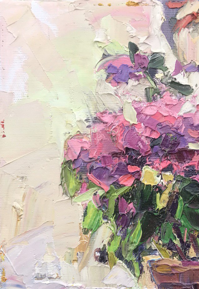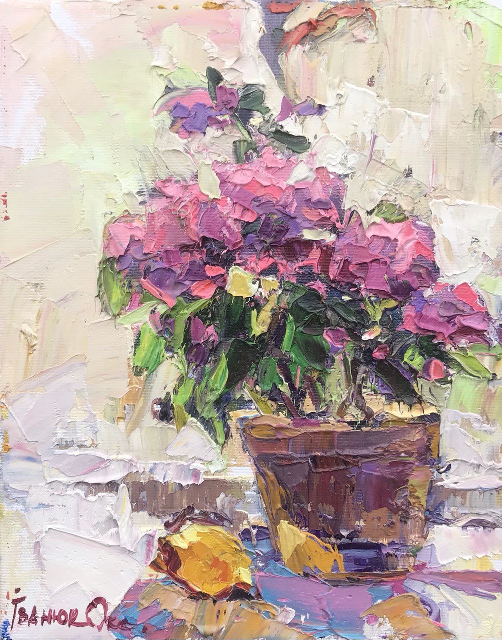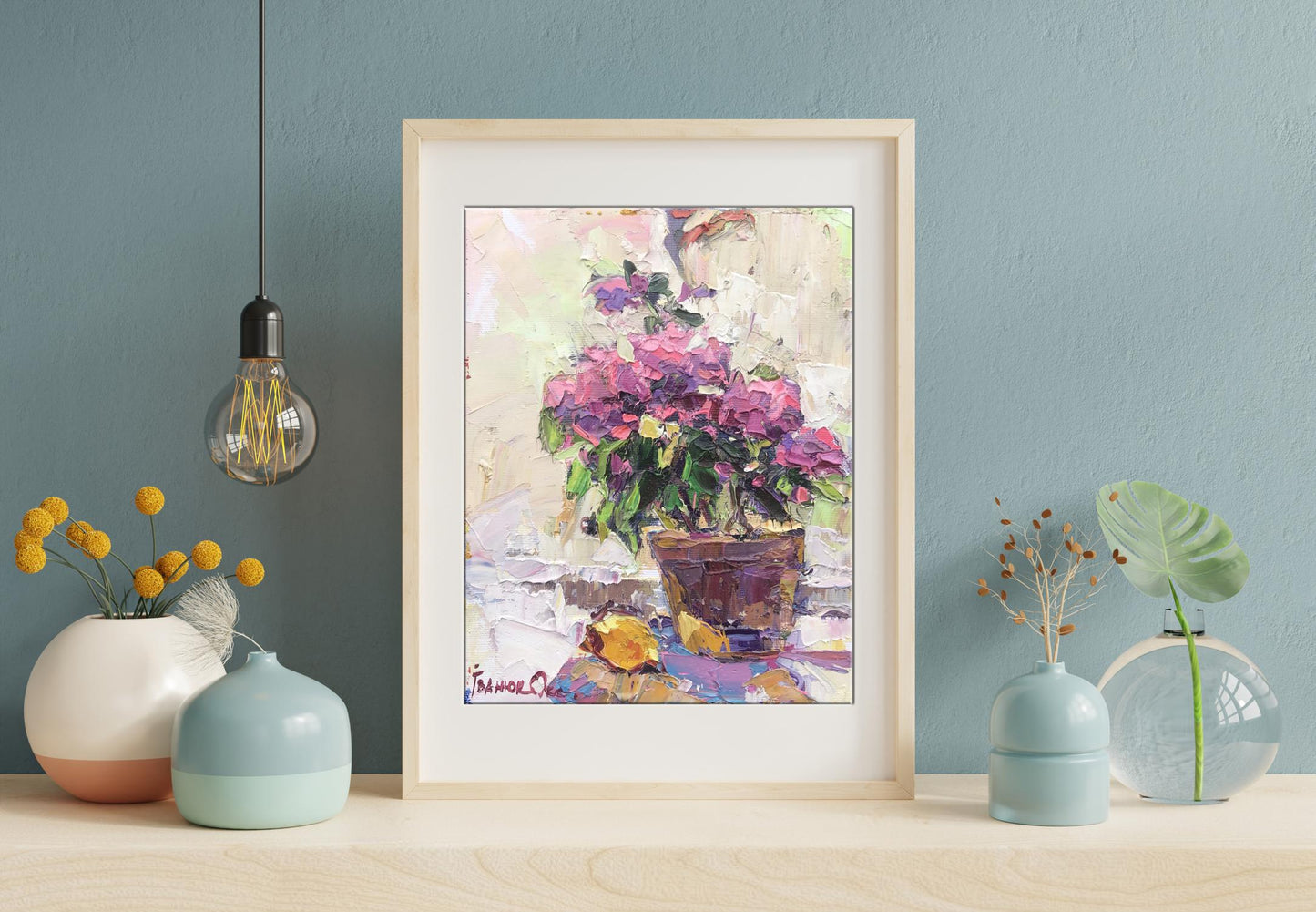 "Geranium on the Window" is a part of the esteemed Collection of Still Lifes and Collection of Flowers. Each painting in these collections is a testament to Kalenyuk’s unique ability to capture the essence and beauty of floral subjects. Her work elevates the simple joy of nature’s blossoms into an art form that speaks directly to the soul.