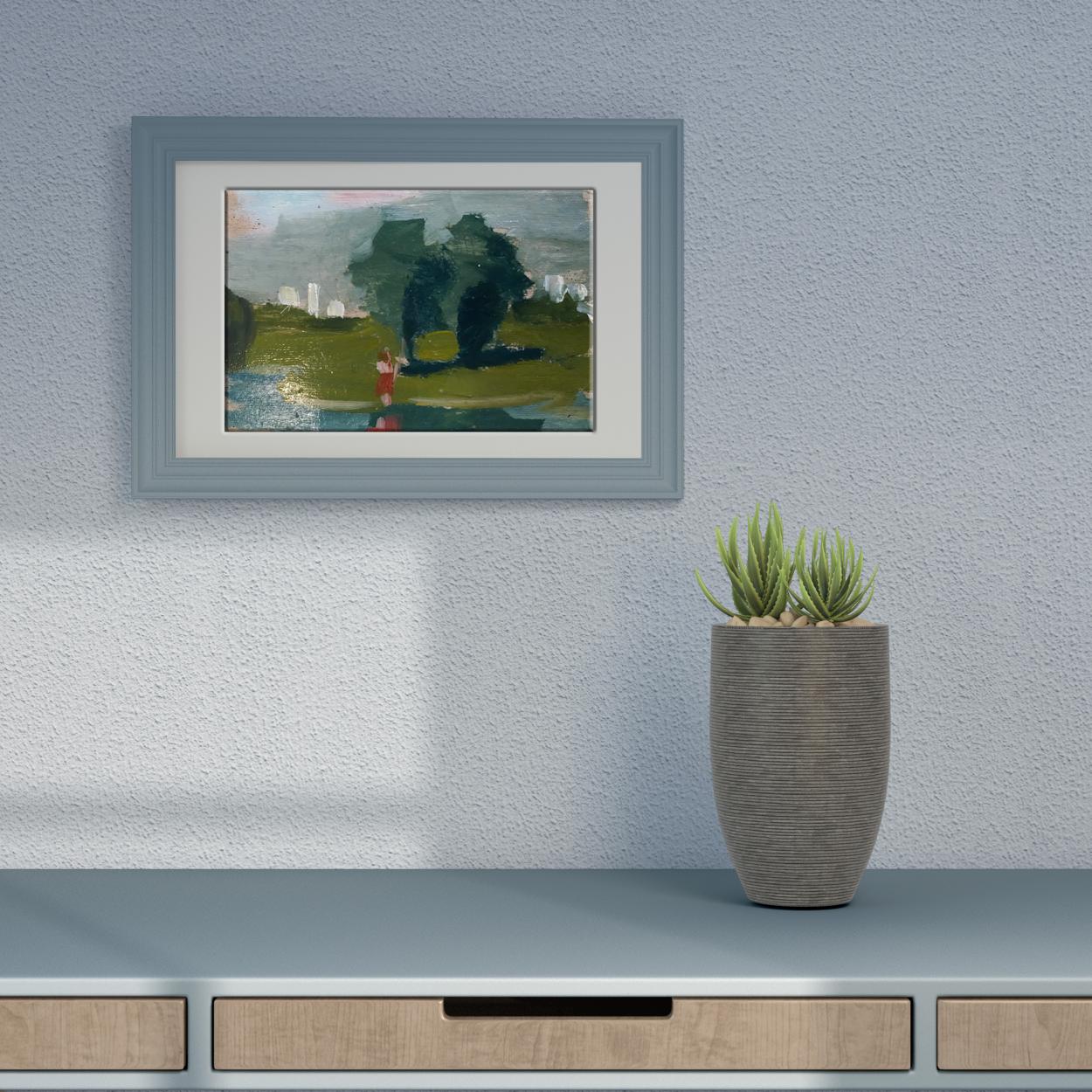 Looking for a stunning piece of art to add to your collection? Check out our oil painting "Girl by the River"! The girl in the painting is standing over a river, with trees and high-rise residential buildings in the background. This painting is sure to add a touch of elegance to any room!