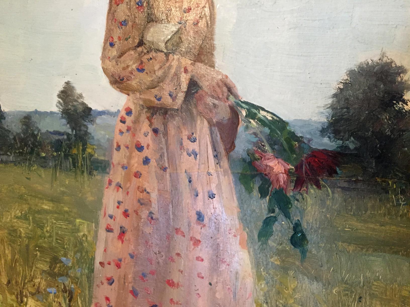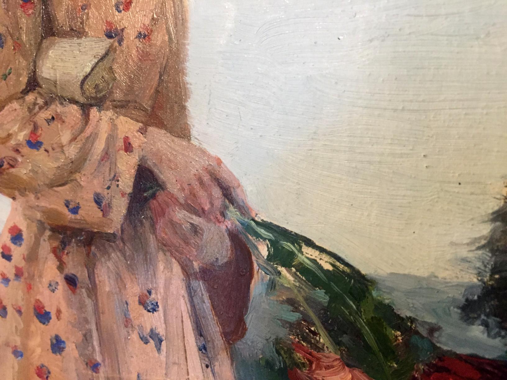 Oil painting Girl with flowers Leonid Mikhailovich Stil'