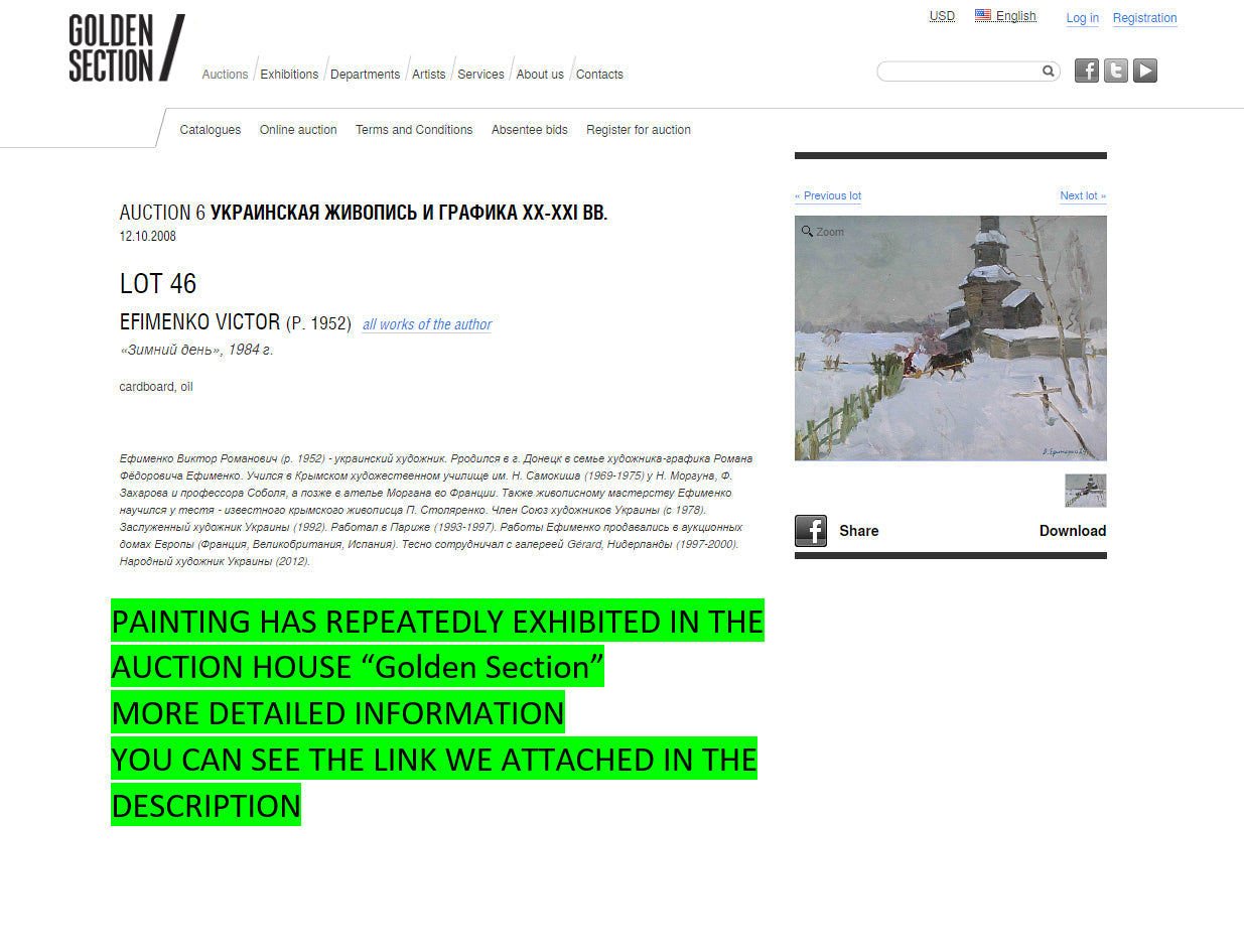 PAINTING HAS REPEATEDLY EXHIBITED IN THE AUCTION HOUSE “Golden Section”