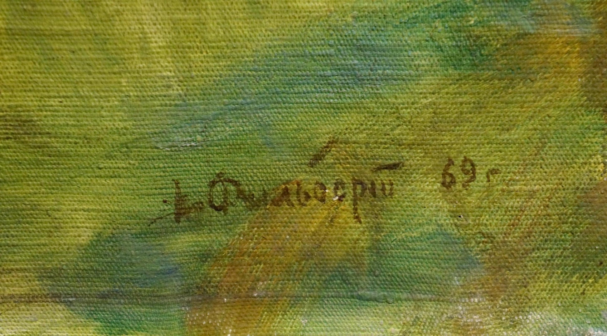 About the artist: Born July 26, 1911 in Dubovka, Volgograd region. He graduated from the Kiev Art Institute (1939). Teachers by specialty - F. Krichevsky, P. Volokidin, M. Sharonov, S. Grigoriev, K. Eleva, I. Pleshchinsky, 3. Tolkachov. He worked in the industry of easel painting. The main works: “Prisoners are Leading” (1943); "Unemployed. Old Donbass "(1957); “The Komsomol mine is here!” (1960); “In the Aral expedition” (1961); “With a song about the Motherland” (all works, except the first, co-authored with M. Wolstein). He participated in exhibitions: republican and all-union since 1947, personal - Lugansk, 1969. He was awarded medals. He died in 1996.