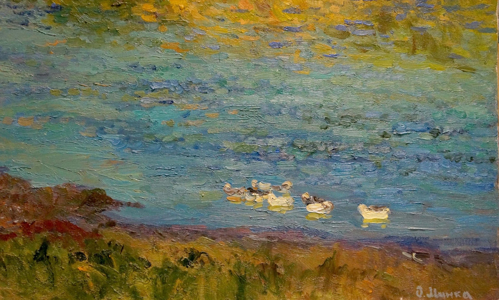 Oil painting Hot summer day by the river Alexander Mynka