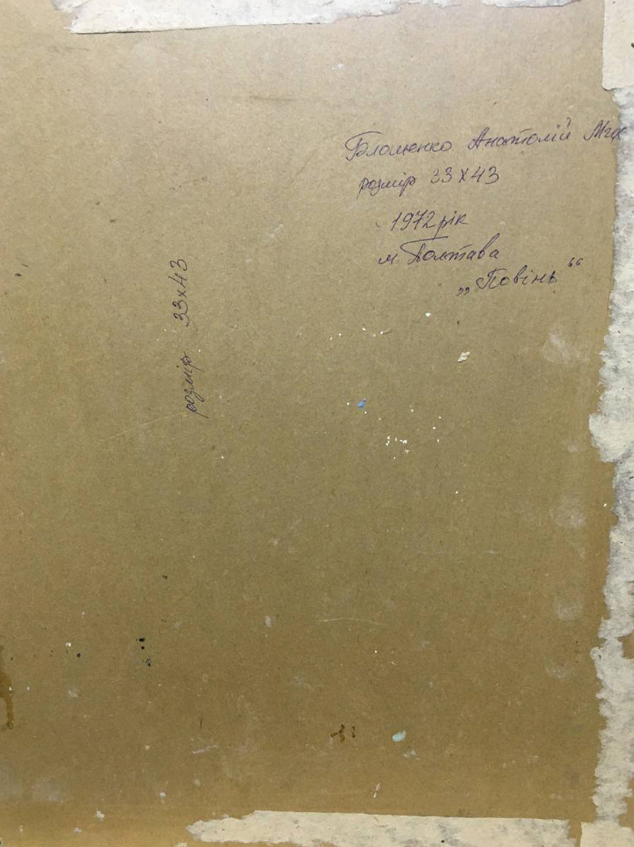 About the artist: Born on November 26, 1938 in the village of Kalinovo (now Popasnyansky district of Luhansk region). Graduated from the Kharkov Institute of Art and Industry (1970). Teachers by profession: A. Constantinople and V. Nenado. Painter. Artist of monumental art. He worked at the Poltava Art and Industrial Combine (1971). Participated in exhibitions: all-Ukrainian (1981, 1990), foreign in Poland (1979), in Bulgaria (1980). Major works - monumental panels: "Wreath" (1986), "Oil", "Minerals", "Energy" (1990-1992); painting: "Towards the next summer" (1988), "Awakening" (1990), "Movement", "In memory of V. Stus" (1992), "After the rain" (1994), "To each his own" (1998-2002). The works are kept in the museum of the Military Academy of the General Staff in Moscow.