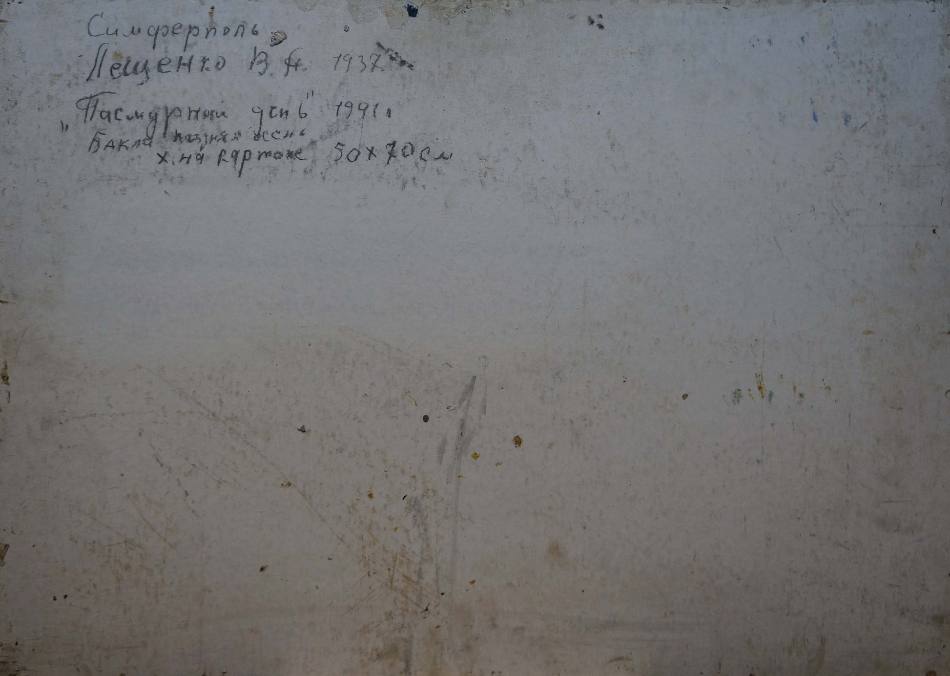 About the artist: Born on March 22, 1937, in the city of Donbass, Donetsk region. He studied art privately (1969-1977). Teachers in the specialty: I. Gorbach. Painter. Author of landscapes of Ukraine, Turkey. Member of the National Union of Artists of Ukraine (1988). Creative work. Participated in exhibitions: regional, republican, all-Union (since 1970). Personal exhibitions - in Simferopol (1986-1987, 1993), Krasnoperekopsk (AR Crimea, 1987), Istanbul (1993, 2004). Major works: "Forever in memory" (1985), "My workplace" (1992), "Evening" (1995), "At Karadag" (1999), "Turkish carnations" (2001), "Old yard" (1979) ), "In December" (1981), "Zorana earth" (1984), "In the Crimean forest", "Apple tree blossoms" (1996), "In the vicinity of Istanbul", "Turkish carnations" (2001), "Rainy day in Istanbul "(2003)," Karadag "(2007); series - "Landscapes of Turkey" (1993-2005). Lived and worked in the city of Simferopol.
