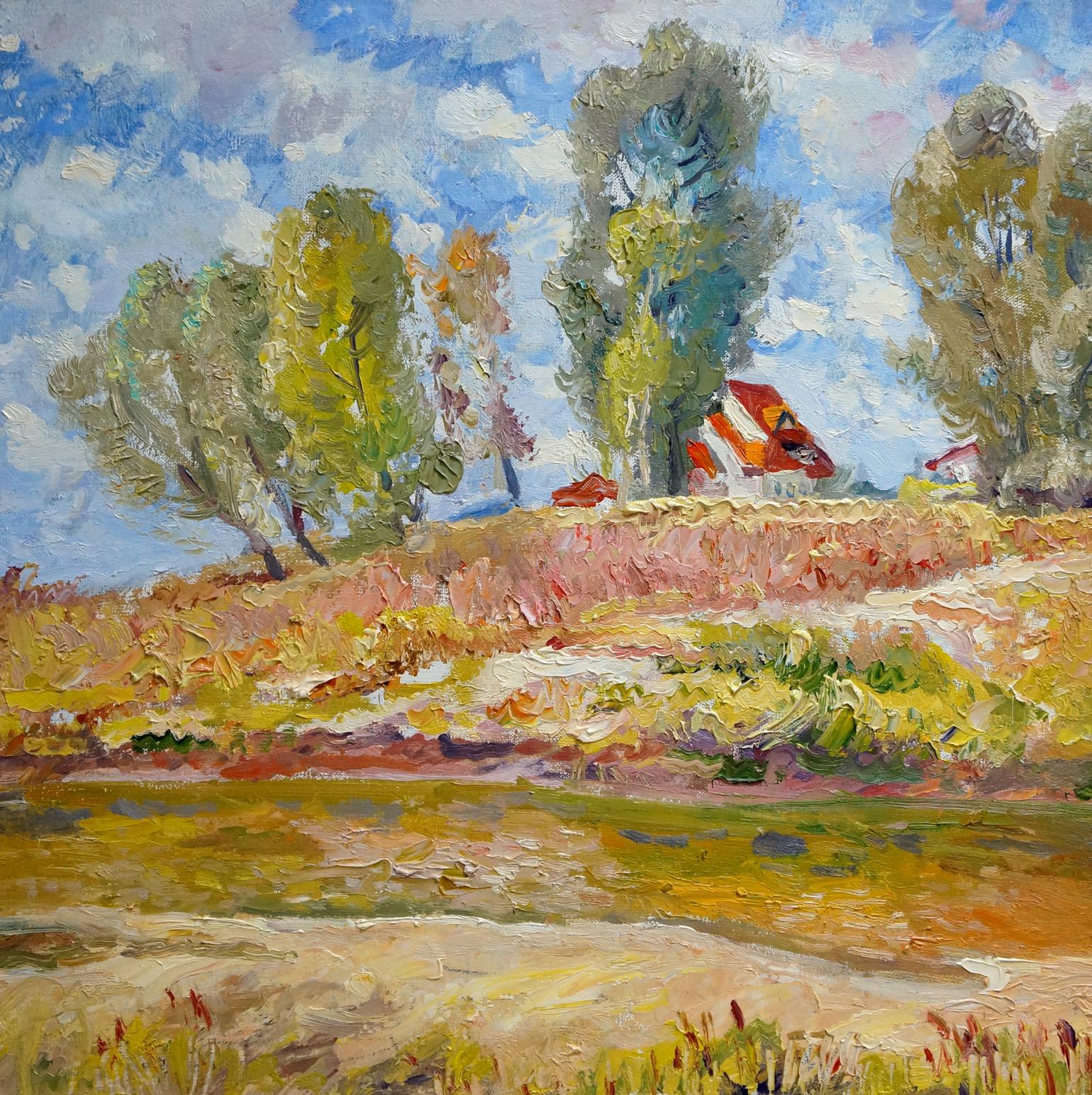 About the artist: Born May 15, 1938 in the Donetsk region. He studied at the Dnepropetrovsk Art College (1960-1965); Kiev Art Institute (1965-1970). Graduation robot - participation in the creation of the Korsun-Shevchenkovsky battle diorama . Zabashta. Painter and graphic artist, master of the landscape. Member of the National Union of Artists of Ukraine (since 1980). Participated in exhibitions: city, republican, all-Union and foreign. Personal exhibitions at the National Art Museum of Ukraine and the Ukrainian Culture Fund (2000). Major works: "Fields" (1982), "View of the Mountain" (1986), "Houses over the River" (1992), "Old Bridge" (1987), "Road to the Church" (1989), "Cloudy Day" ( 1984), On the Shore (1988), Under the Pink Clouds (1974), The House on the Shore (1982), Hot Summer (1986), Across the River (1988), The Path (1986) ), "To the Water" (1990), "New Village in Chernihiv" (1989), "Grandfather's House" (1989), "Bay by the Dnieper" (1998), "At the Green Grove" (986), "Winter Rainbow" (1991), “Summer Day in the Carpathians” (1998), “Shadows in the Snow” (1985), “The Prelude” (1998), “Rural Motive” (1980s), “Old Stodola” (1989), “Forest Lake "(1976)," Autumn Motive "(1979) Lived and worked in Kiev, died in 1999.