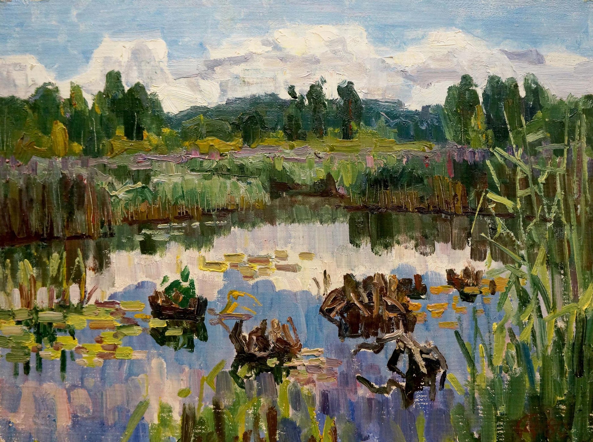 Oil painting Lake in the forest Sabadysh Petr Evlampievich