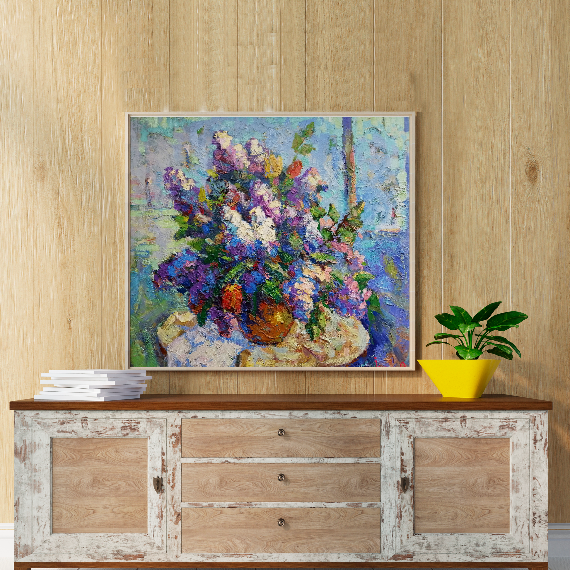 Adorn your space with Ivanyuk Oksana's 'Lilac Bouquet', a vibrant oil canvas from our Exclusive Art Collections, ideal for gifting or collecting.