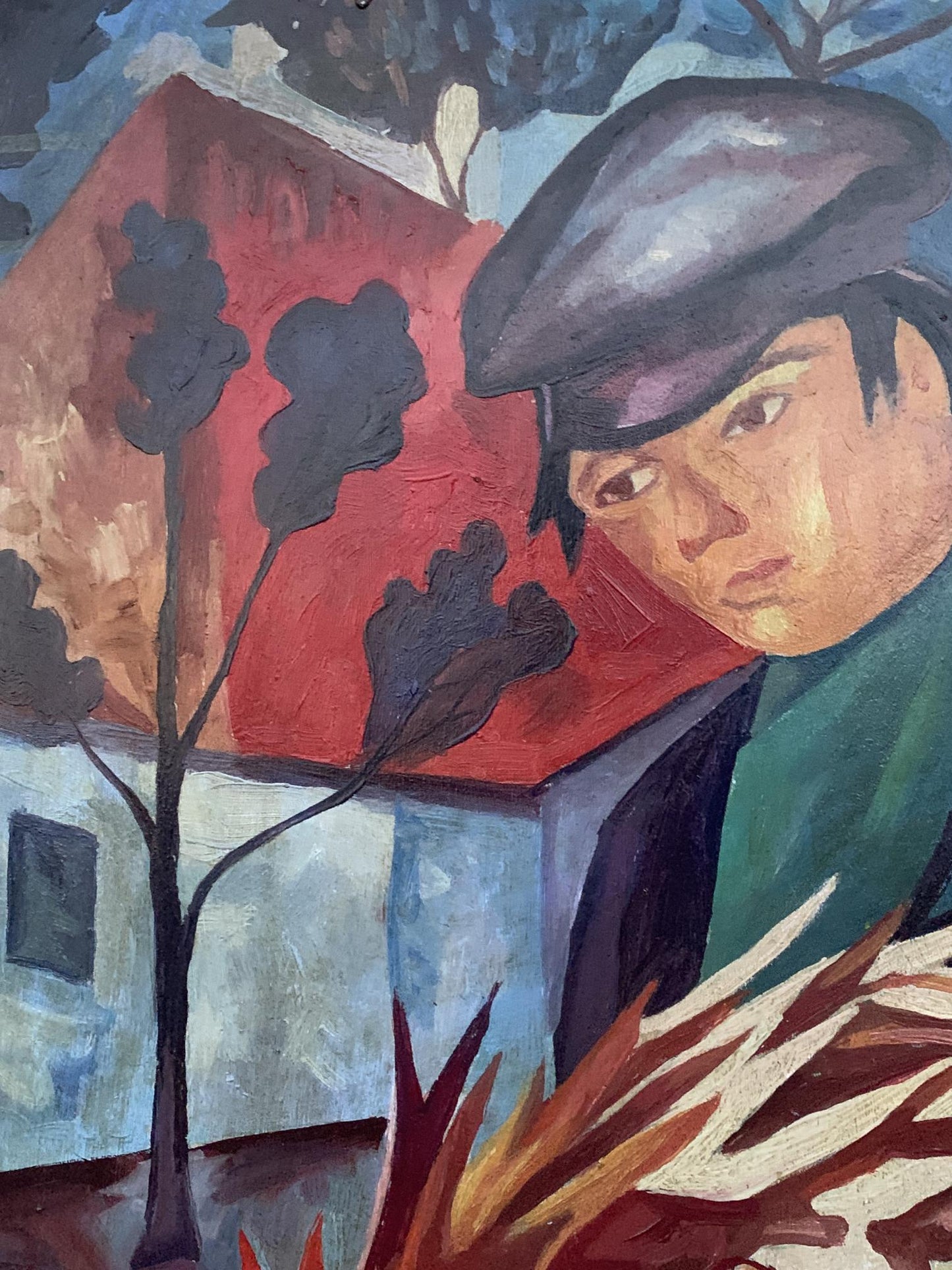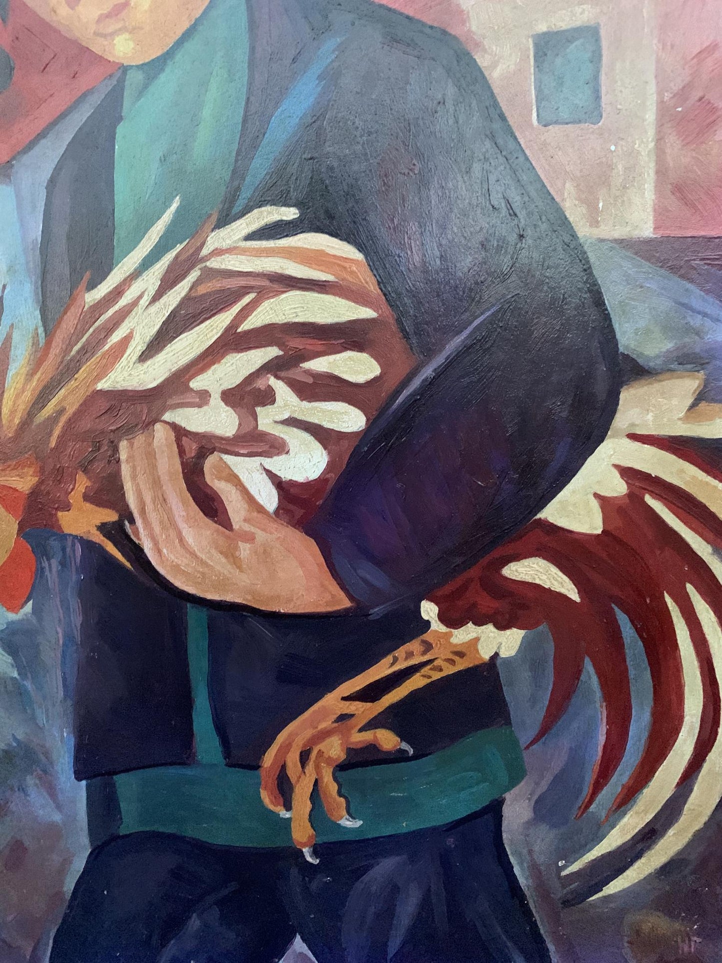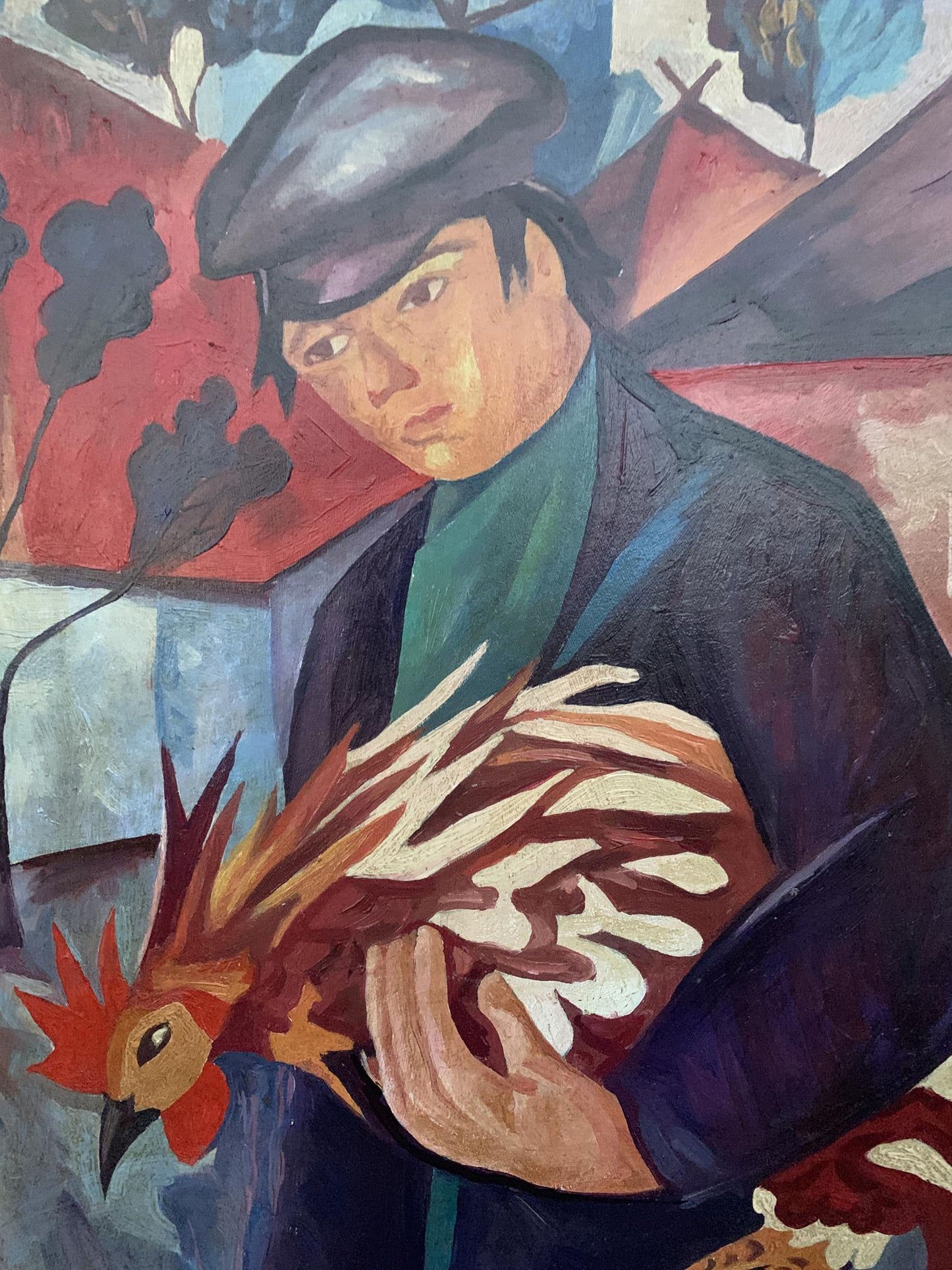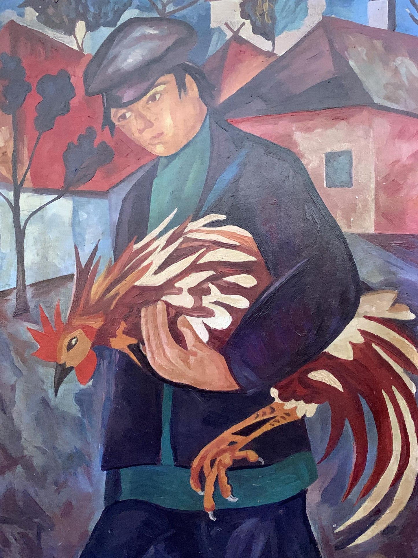 Oil painting Man with a rooster V. Konotopsky