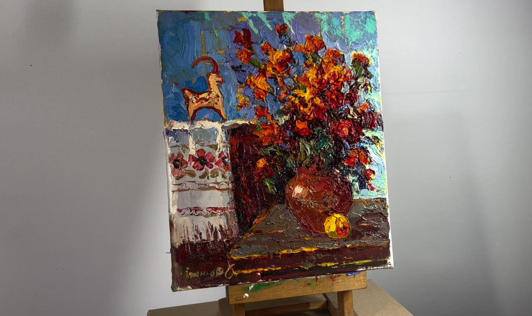 Oil painting Marigolds and goat Oksana Ivanyuk
