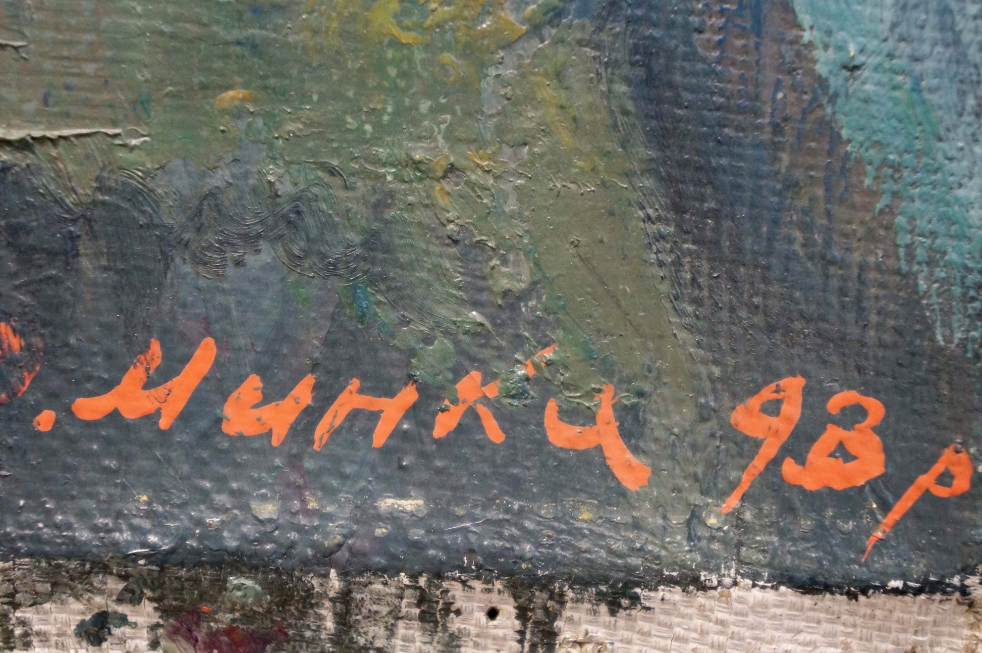 About the artist: Was born on May 15, 1938 in Donetsk region. Studied at the Dnepropetrovsk Art School (1960-1965); Kiev Art Institute (1965-1970). Diploma robot - participation in the creation of the Korsun-Shevchenko battle diorama Teachers by profession: the artist's father - Fedor Emelyanovich, K. Berkuta, G. Chernyavsky, V. Kostetsky, K. Trokhymenko, T. Yablonskaya, Y. Yatchenko, V. Puzyrkov, V. .Zabashta. Painter and graphic artist, master of landscape. Member of the National Union of Artists of Ukraine (since 1980). Participated in exhibitions: city, republican, all-union and foreign. Personal exhibitions at the National Art Museum of Ukraine and the Ukrainian Cultural Foundation (2000). Major works: "Fields" (1982), "View of the Mountain" (1986), "Houses over the River" (1992), "Old Bridge" (1987), "Road to Church" (1989), "Cloudy Day" ( 1984), "On the Shore" (1988), "Under Pink Clouds" (1974), "House on the Shore" (1982), "Hot Summer" (1986), "Across the River" (1988), "Path" (1986) ), "Towards the Water" (1990), "The New Village in Chernigov Region" (1989), "Dedov's House" (1989), "The Bay at the Dnieper" (1998), "At the Green Grove" (986), "Winter Rainbow" (1991), "A Summer Day in the Carpathians" (1998), "Shadows in the Snow" (1985), "Fore-Evening" (1998), "Rural Motif" (1980s), "Old Stodola" (1989), "Forest lake "(1976)," Autumn motive "(1979) Lived and worked in Kiev, died in 1999.