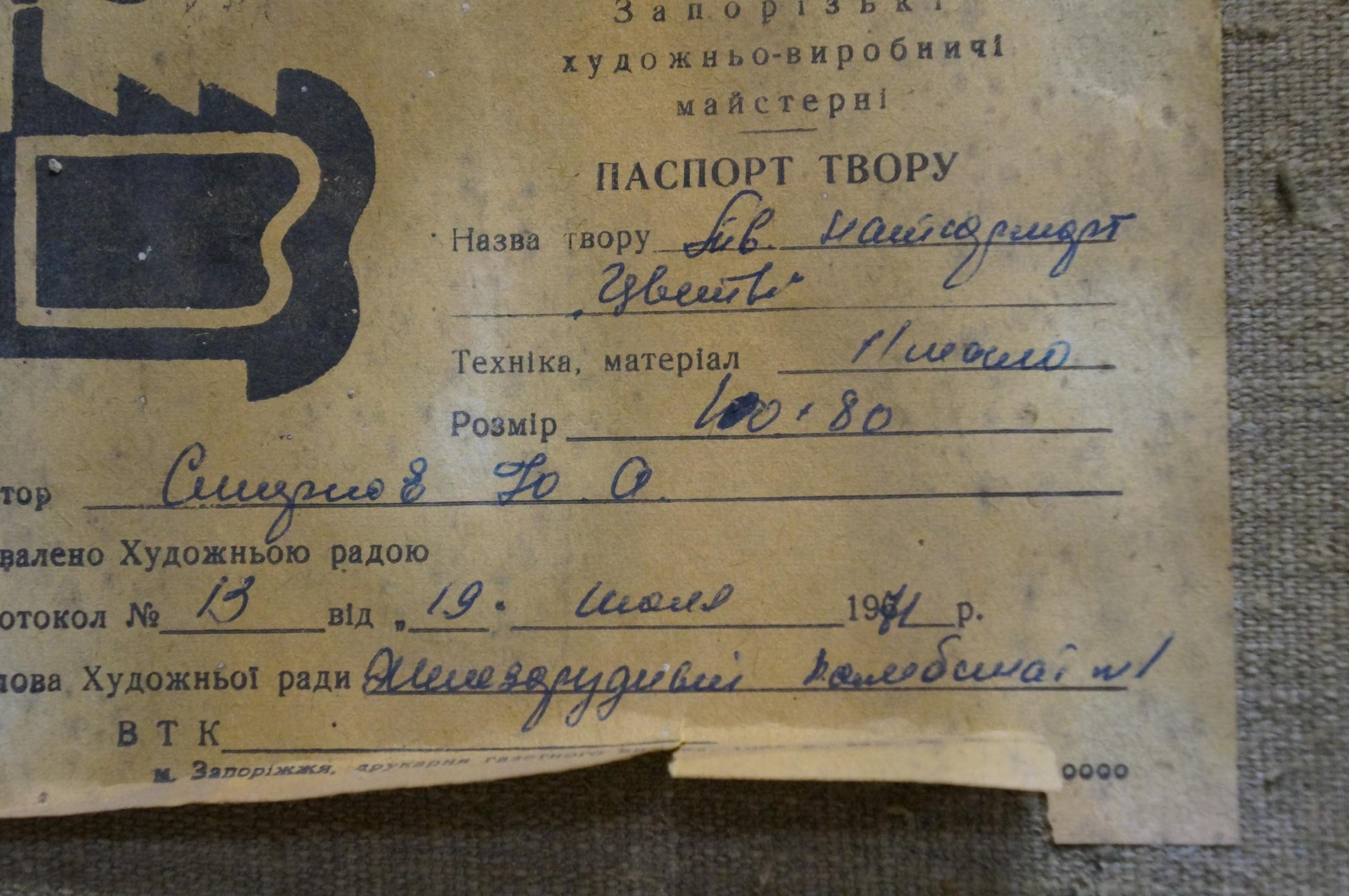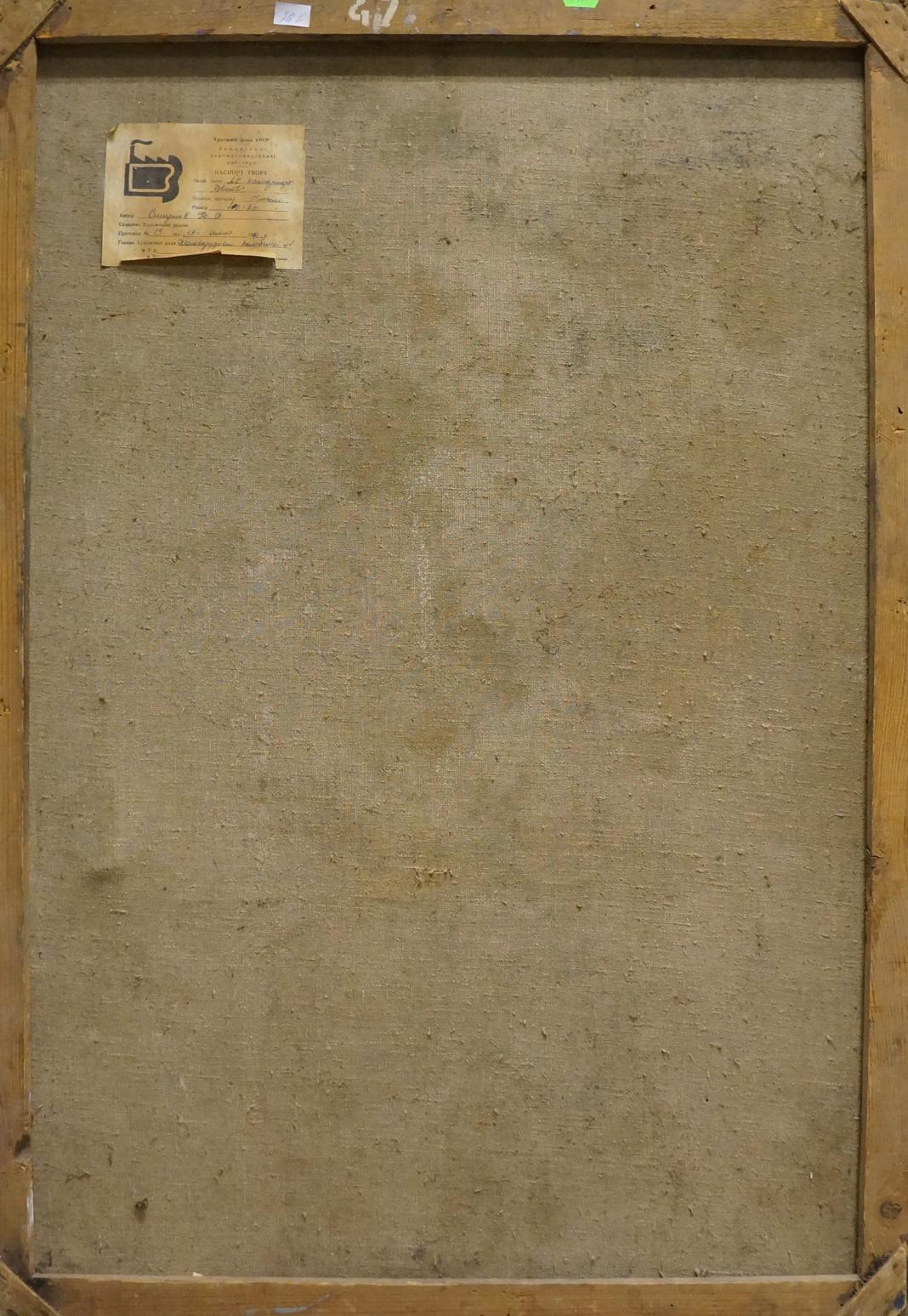 About the artist: Born July 3, 1925 in Kharkov. Graduated from the Kharkov Art Institute (1951). He worked in the field of easel painting and graphics. Major works: portrait of the Komsomol excavator P. Plaksin (1958); "Before the start of the melting" (1960); "T. G. Shevchenko in exile "(1961); "T. G. Shevchenko and M. G. Chernyshevsky "(1964); The First Melting (1967) and others. Participated in republican exhibitions since 1953.