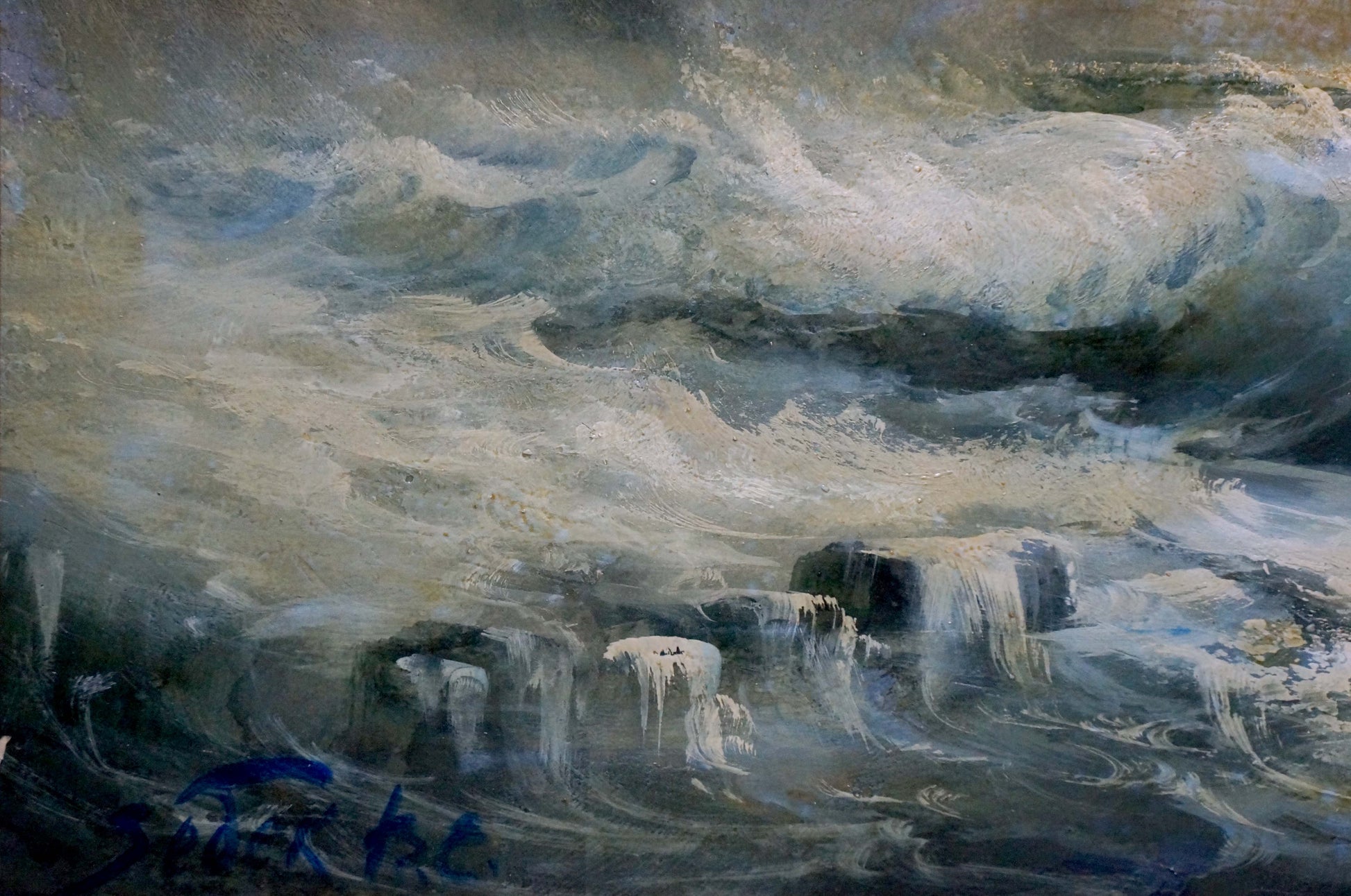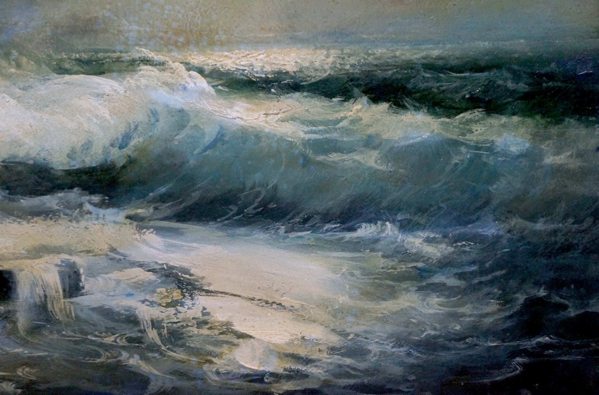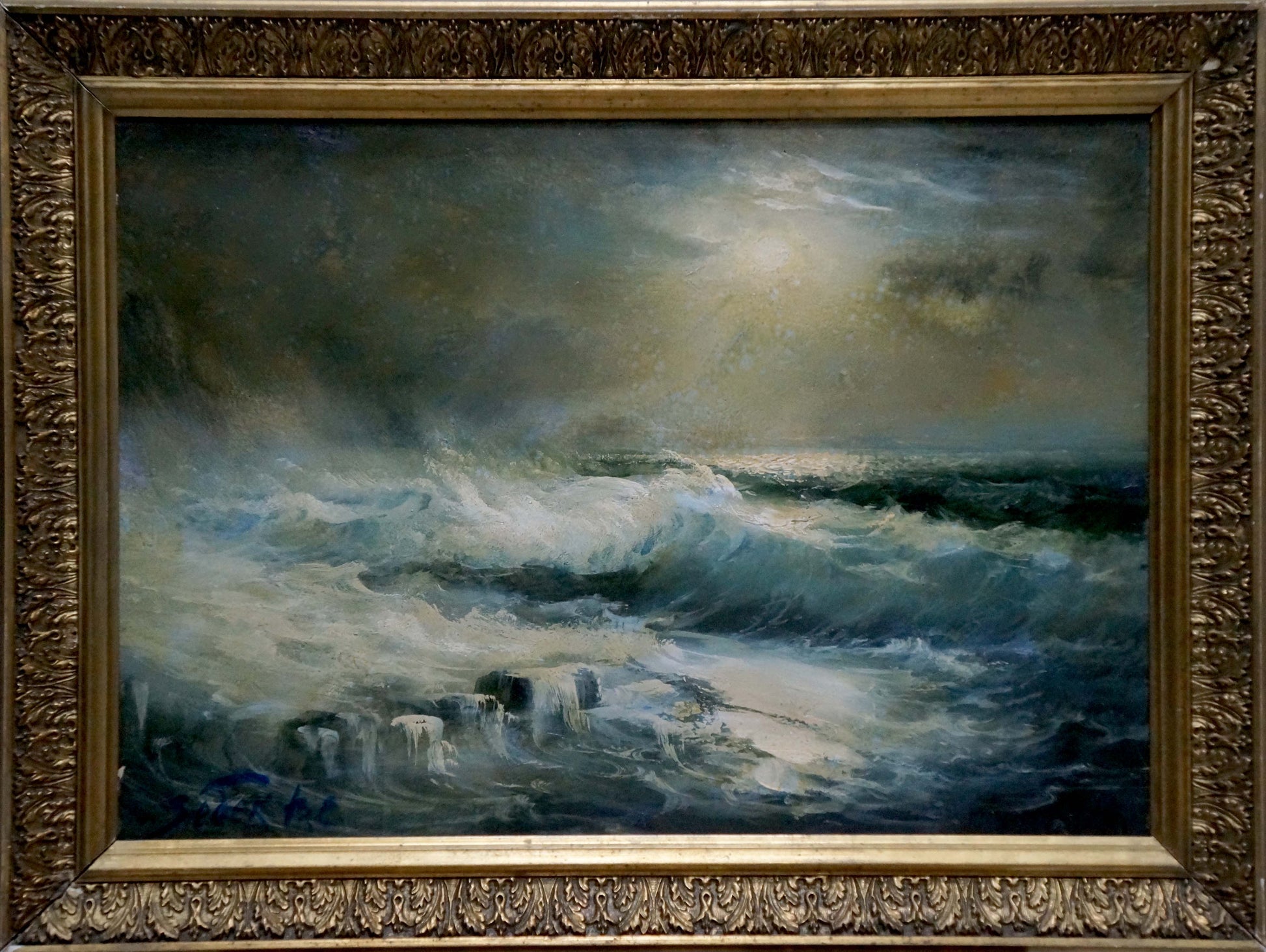 Oil painting Night sea waves Vladimir Zebek