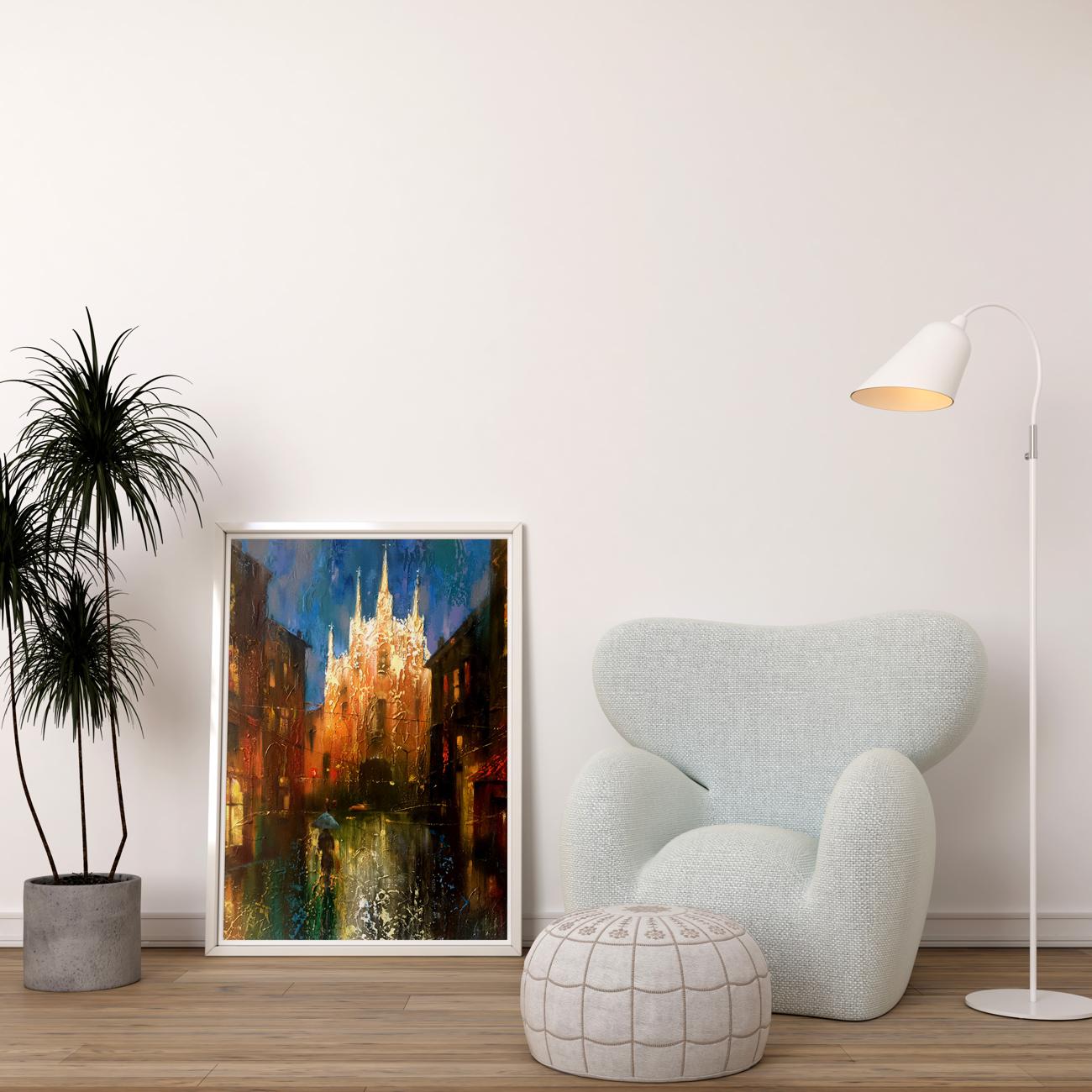 What better way to set the mood in your home than with a stunning oil painting of a city street at night? This "Night Street" oil painting is the perfect choice for adding a touch of class and sophistication to any room. The tall buildings and moonlight give the painting a sense of mystery and romance, while the abstract style ensures that it will be a conversation starter for years to come. Whether you're looking to add some flair to your living room or bedroom, this oil painting is sure to make a statement.