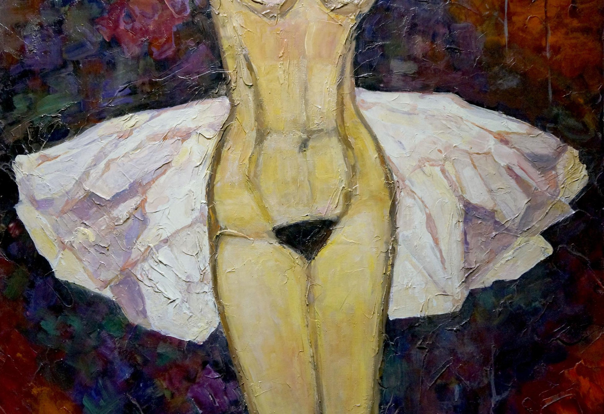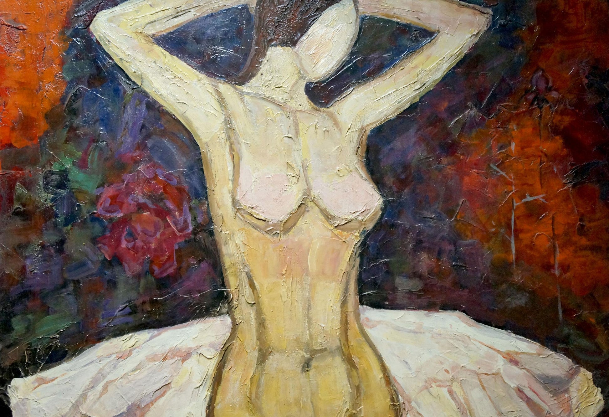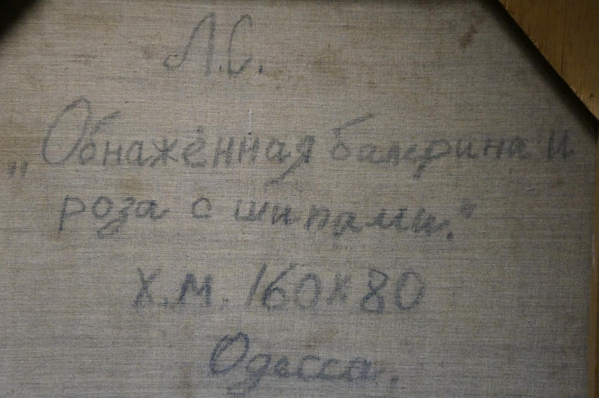 Oil painting Nude ballerina and rose with thorns Semykina Lyudmila Nikolaevna