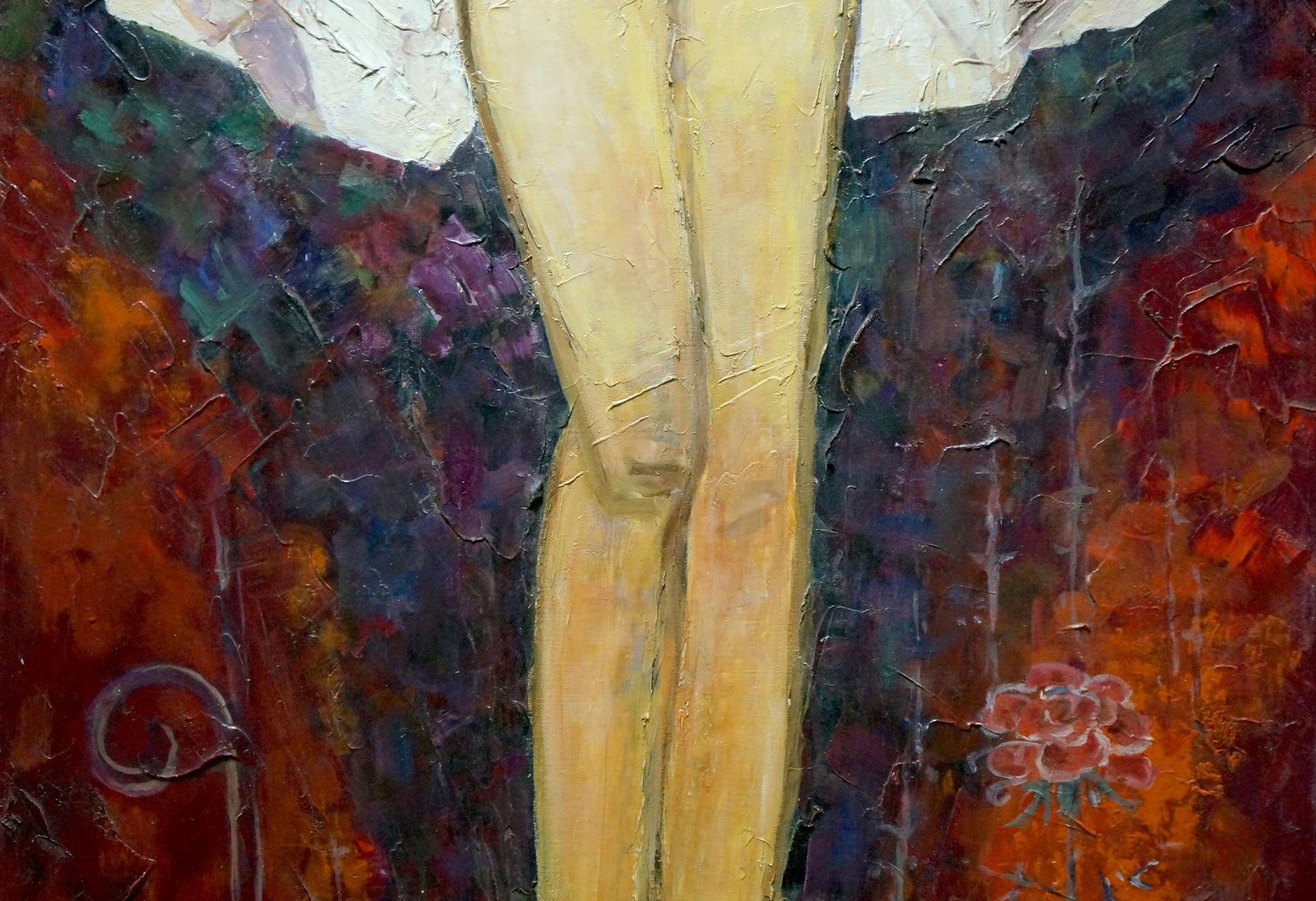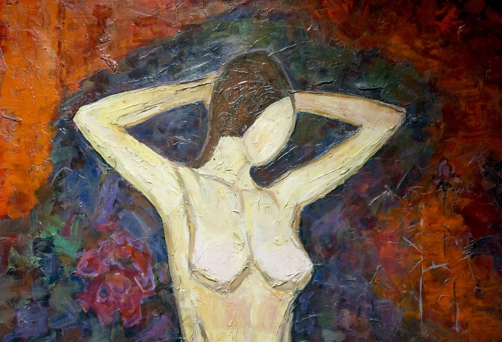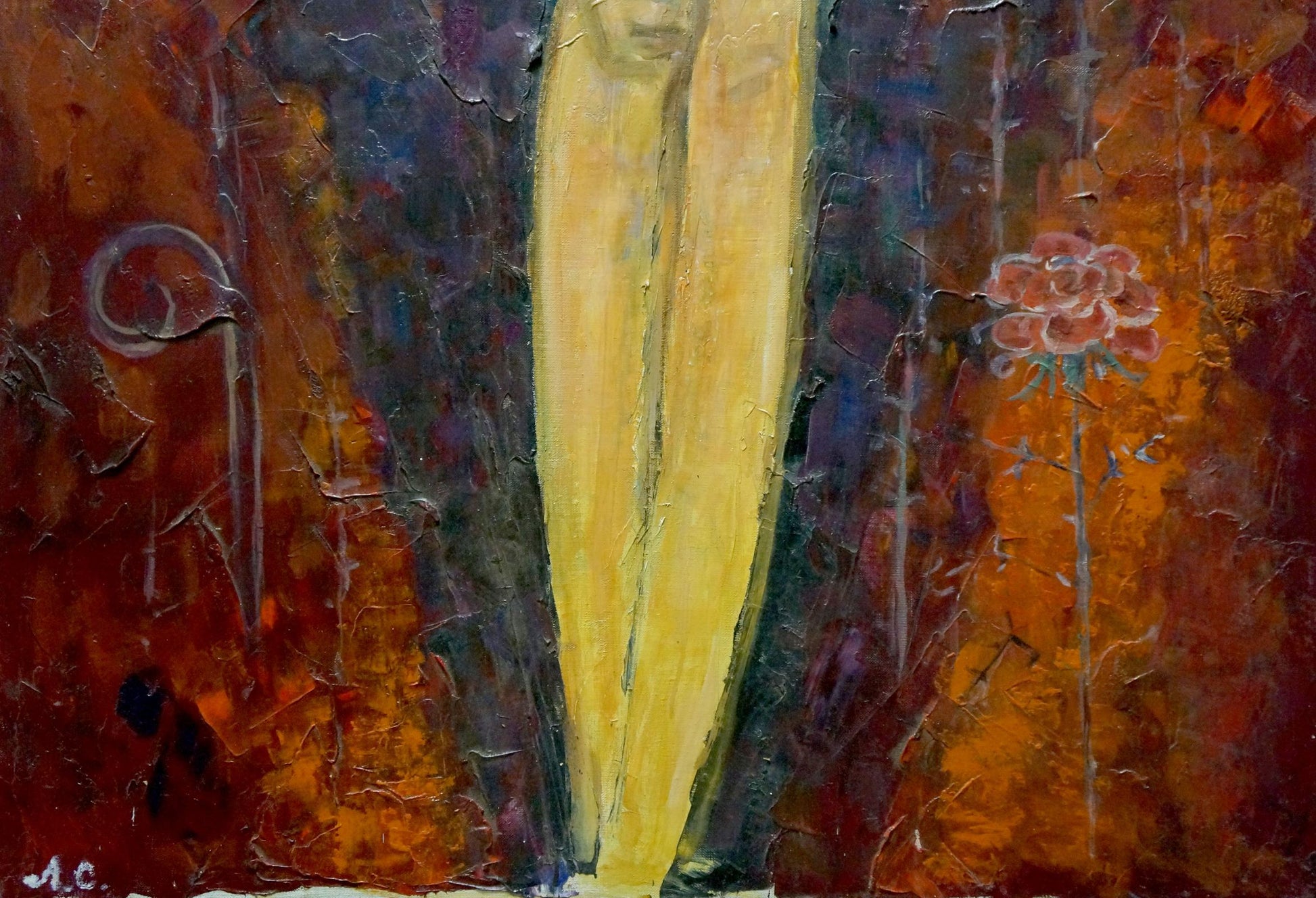 Oil painting Nude ballerina and rose with thorns Semykina Lyudmila Nikolaevna