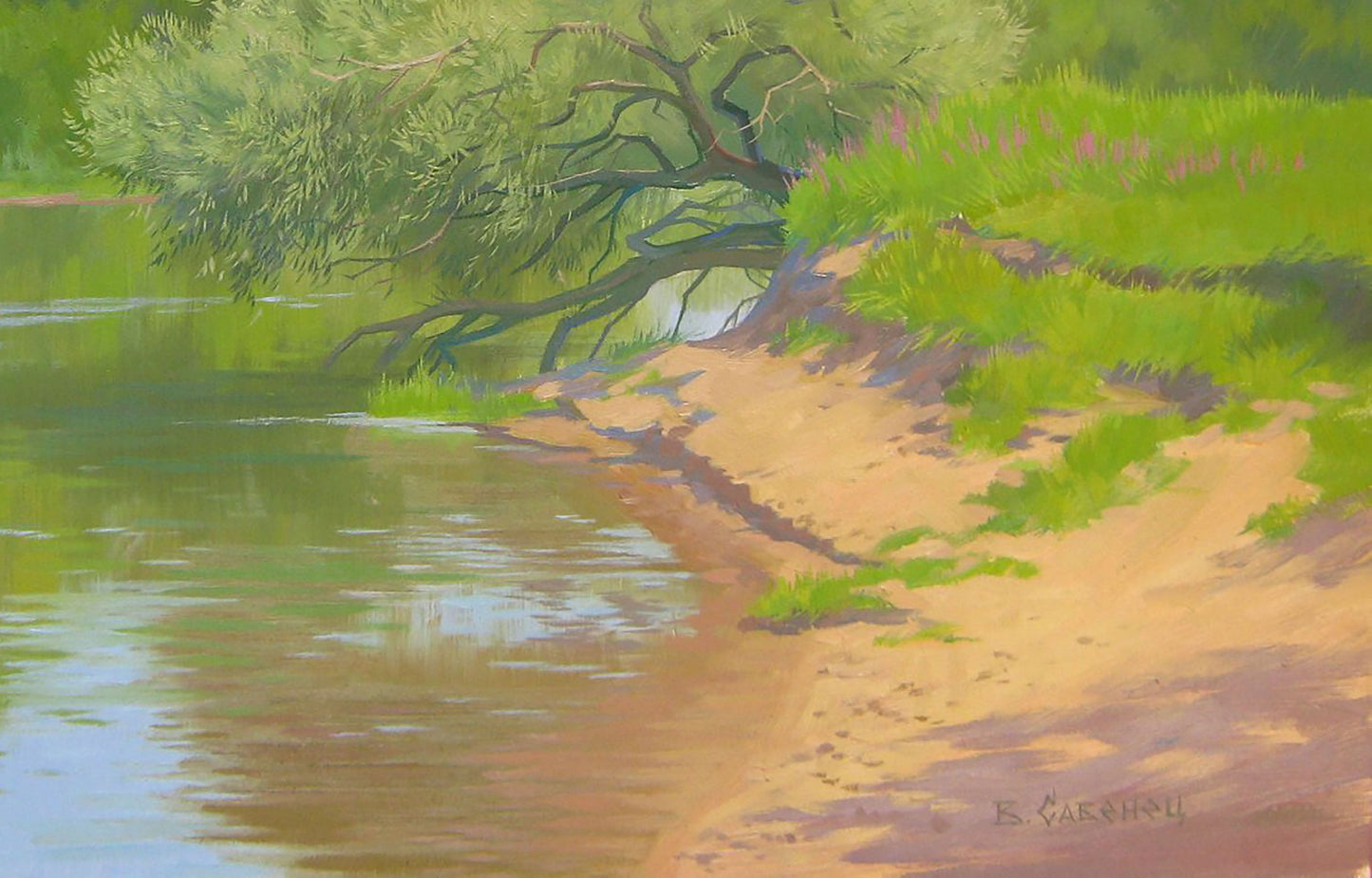 "On the Desna" by Valery Savenets captures the peaceful, untouched beauty of the Desna River's shoreline. The lush greenery reflected on the calm waters creates an atmosphere of serenity, inviting the viewer into a moment of quiet reflection. The soft sunlight casting gentle shadows adds a warmth and stillness to the scene, evoking a deep sense of calm. This work would make a perfect addition to any Collection of Nature Landscapes or Collection of River Landscapes, celebrating the harmonious coexistence of land and water.