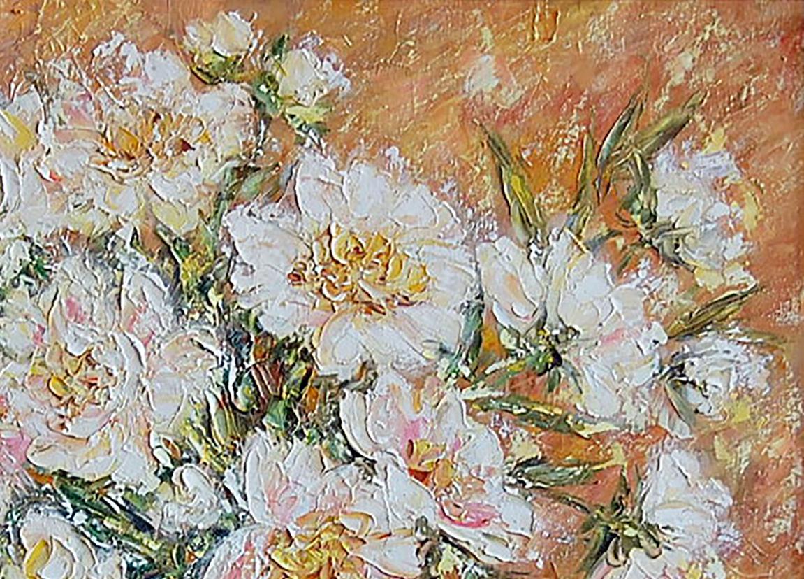 Artim’s use of a golden background accentuates the delicate white petals of the peonies, creating a beautiful contrast between the fleeting nature of flowers and the enduring quality of gold. The rich texture of the flowers and the warm glow of the background create a sense of celebration, as if immortalizing the peonies in their moment of full bloom. For those looking to Buy a Oil painting that captures the elegance and radiance of nature, "Peonies on a Golden Background" offers an exquisite portrayal of purity and beauty.
