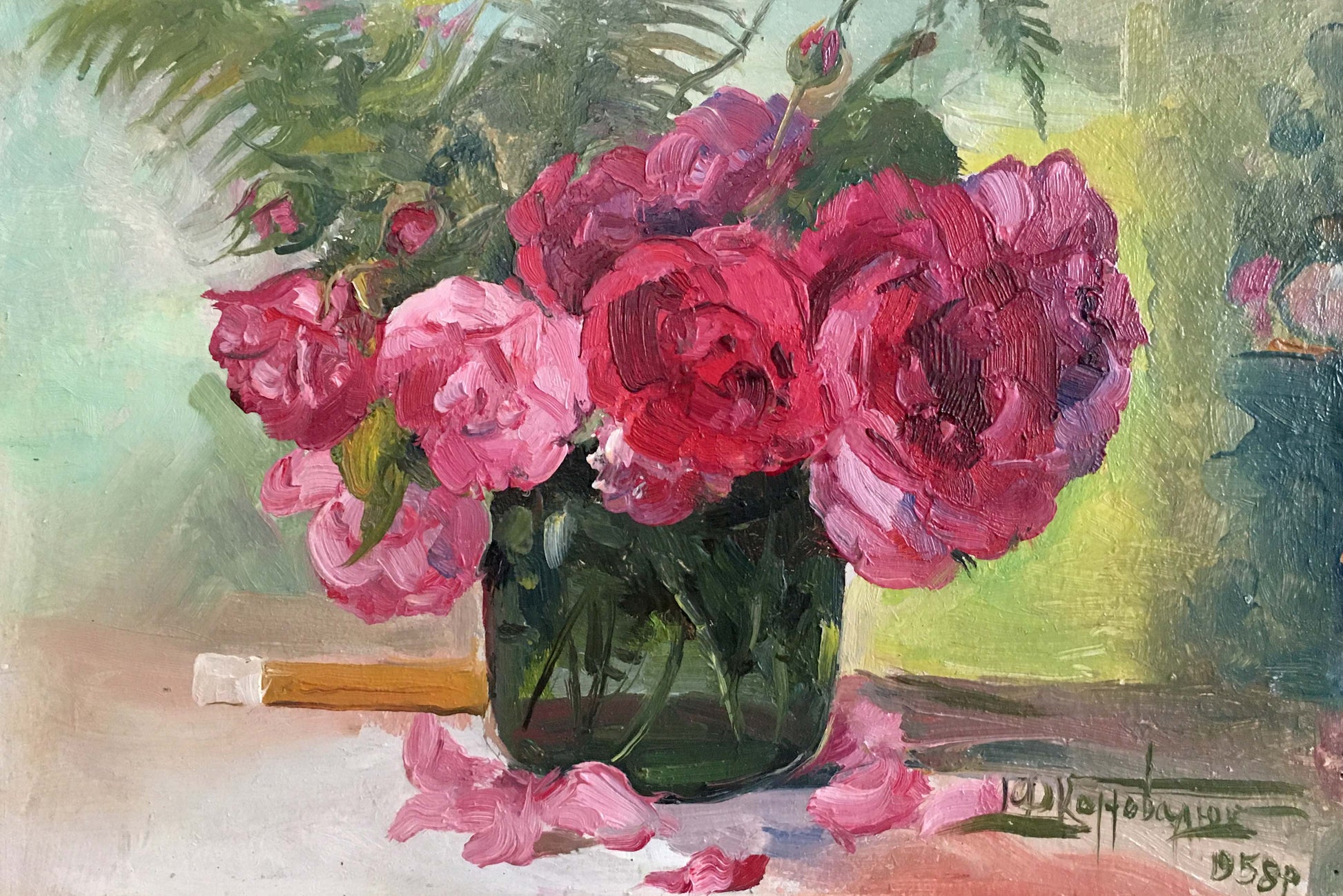Oil painting Pink roses Konovalyuk Fedor Zotikovich