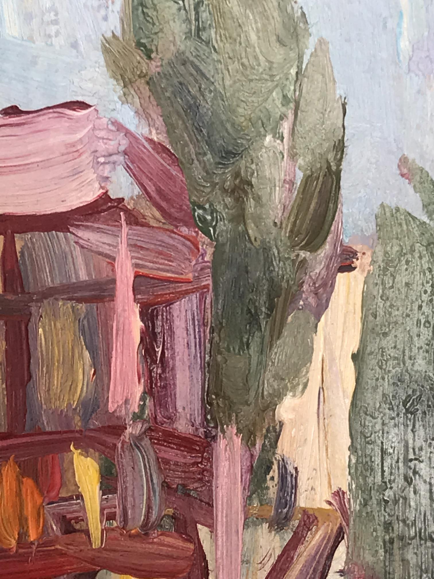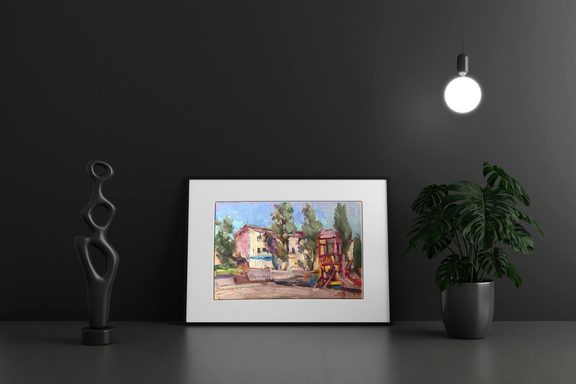Looking for a unique and interesting oil painting for your home or office? Look no further than "Playground" by talented artist. This city courtyard playground scene is full of life, color, and detail, with shady trees providing a beautiful backdrop. It's the perfect way to add some personality to your space.