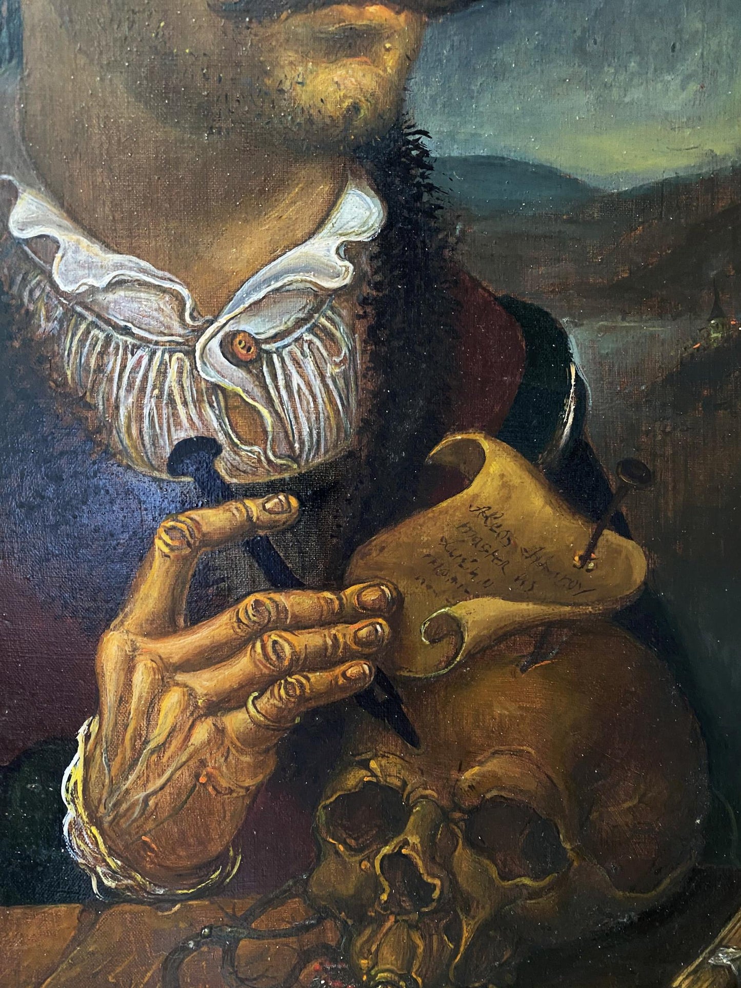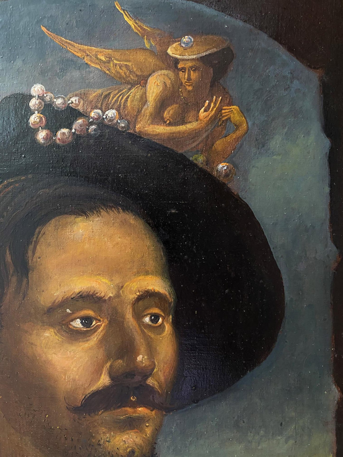Titled "Portrait Brother," this intimate oil painting on canvas by Oleg Arkad'yevich Litvinov delves into the profound connection and nuanced expressions found within familial relationships. Measuring oil in canvas 52x29 cm (20.47x11.41 inches), the artwork captures the essence of the artist's brother, offering a glimpse into the personal life of the painter through the dignified and contemplative portrayal of his sibling. As an original oil mythology painting piece from our collection, "Portrait Brother" showcases Litvinov's exceptional skill in portrait painting, where the emotional depth and personality of the subject are brought to life with each brushstroke. The use of oil on canvas enriches the textural details of the subject's features and attire, highlighting subtle shifts in light and shadow that reveal more than just physical likeness, but also a glimpse into the subject's soul. The painting's composition and palette convey a serene yet potent atmosphere, suggesting the layers of stories, memories, and experiences shared between the artist and his brother. This piece is not just a portrait but a celebration of fraternal bonds and the deep, often unspoken understanding that defines them. "Portrait Brother" is a significant addition to any art collection, particularly appealing to those who appreciate art that reflects human connections and personal histories. There are other genres of painting in our catalog.