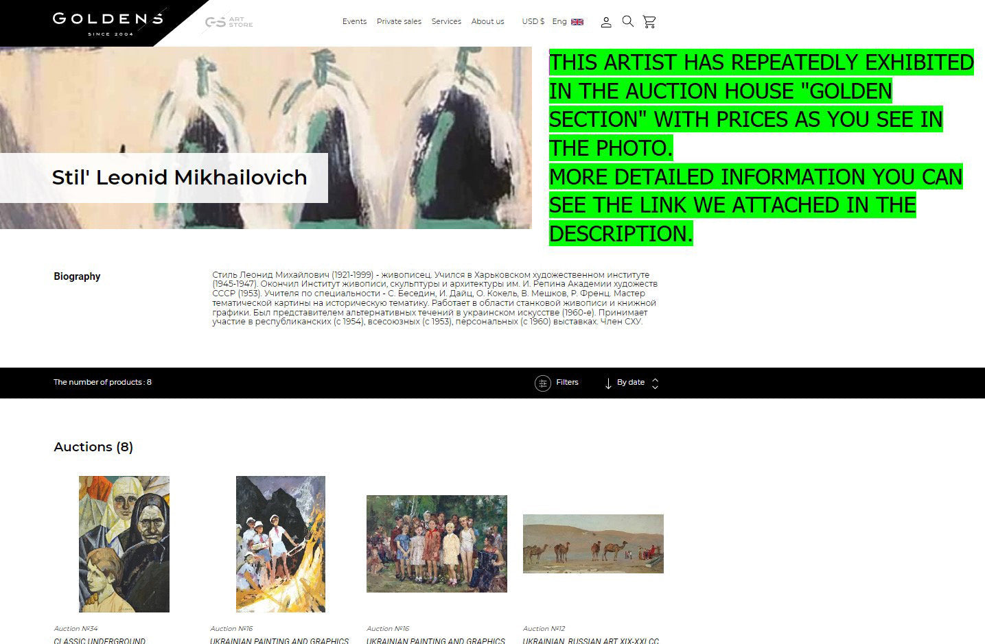 About the artists: Stil' Leonid Mikhailovich (1921-1999) - painter. Studied at the Kharkov Art Institute (1945-1947). Graduated from the Institute of Painting, Sculpture and Architecture. I. Repin of the USSR Academy of Arts (1953). Teachers by specialty - S. Besedin, I. Daitz, O. Kokel, V. Meshkov, R. Frenz. Master of thematic painting on historical themes. Works in the field of easel painting and book graphics. He was a representative of alternative movements in Ukrainian art (1960s). Takes part in republican (since 1954), all-Union (since 1953), personal (since 1960) exhibitions. Member of the Union of Artists.