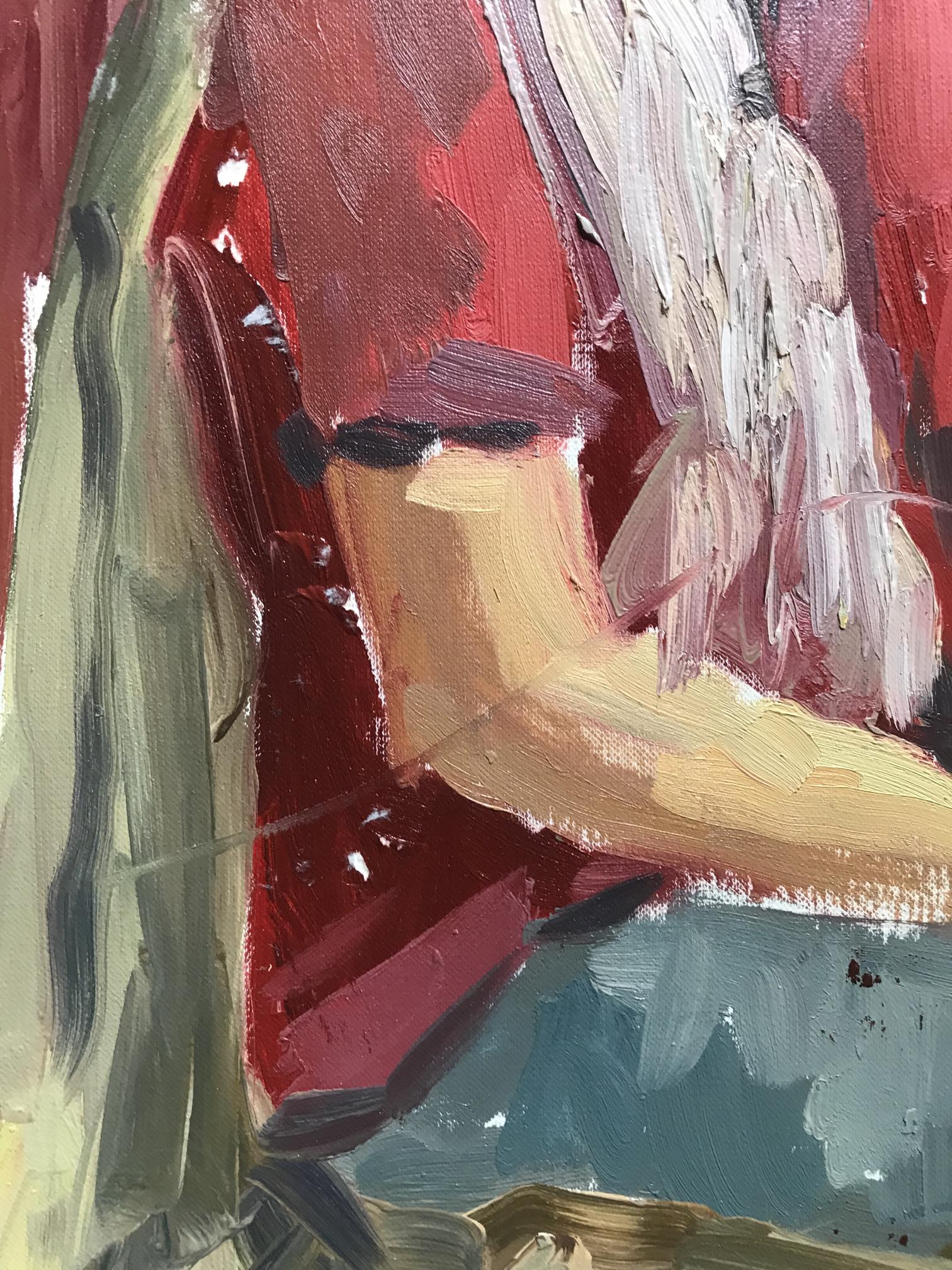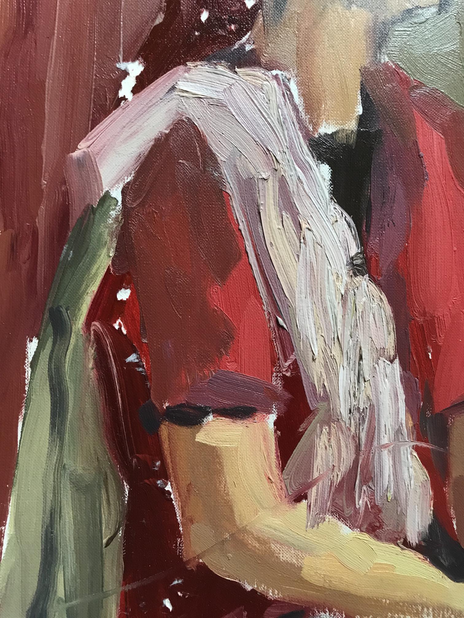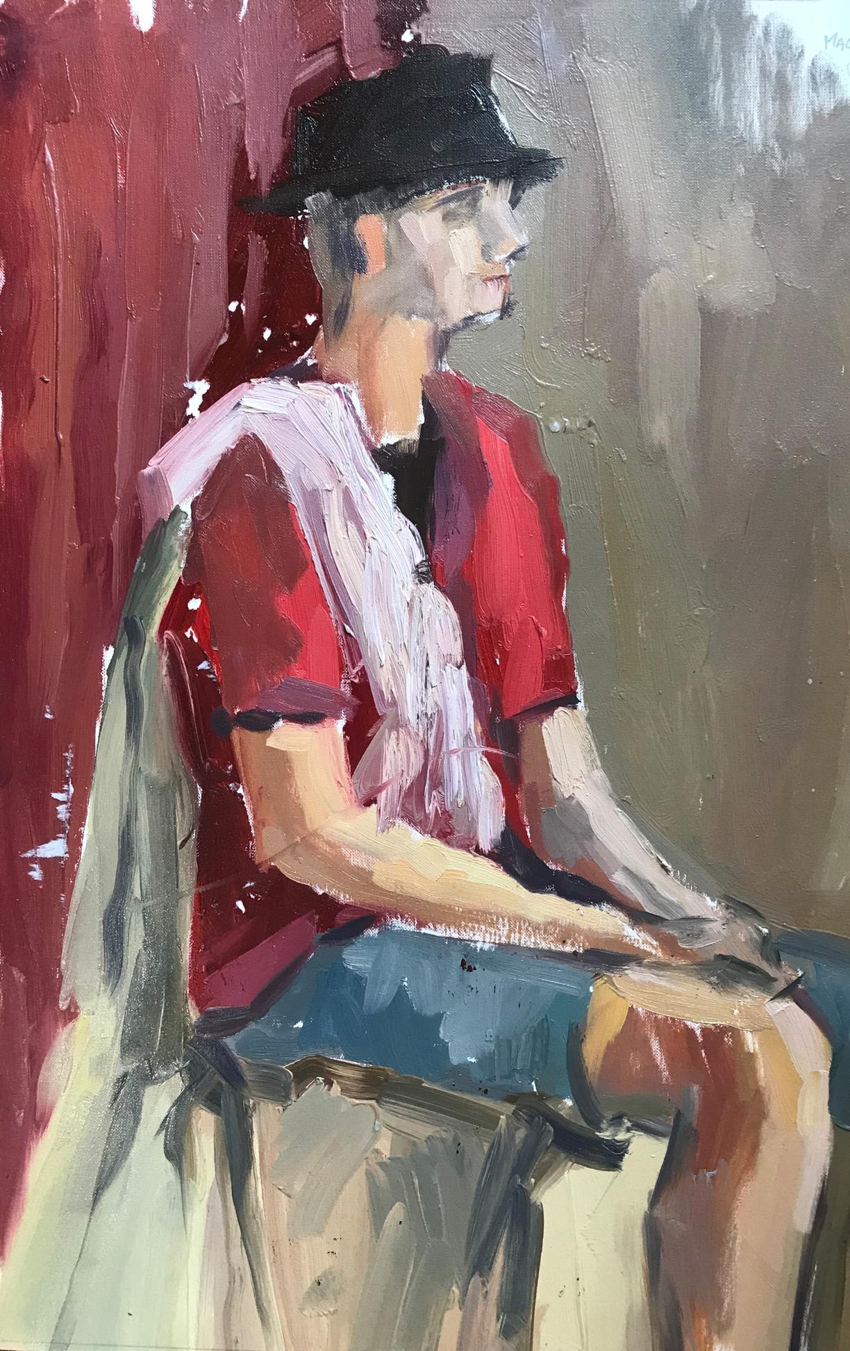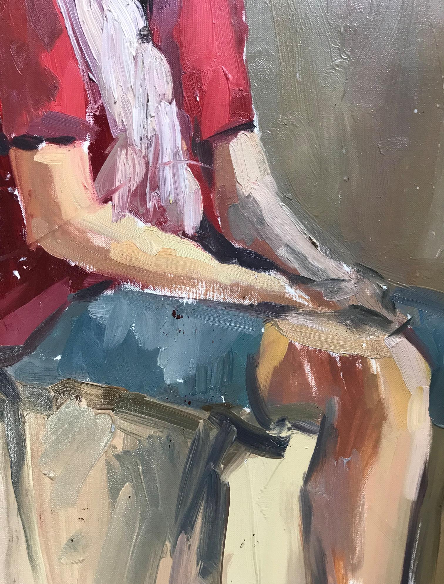 This oil painting is a beautiful and moving portrait of a young boy. He is captured in a moment of rest, with a towel over his shoulder after a hard day of play. The artist has expertly used light and shadow to create a sense of depth and dimension in the painting. The boy's face is full of emotion, and the viewer can't help but feel empathy for him. The painting is both charming and haunting, and it is sure to elicit an emotional response from anyone who sees it.