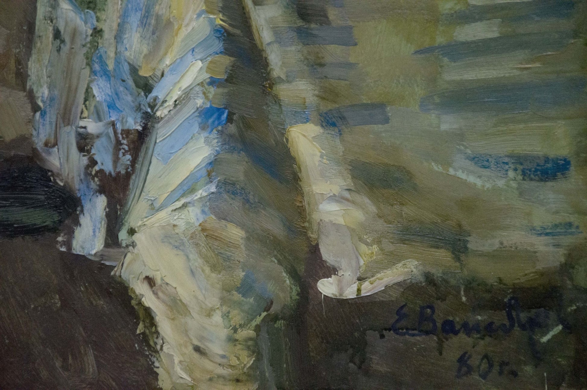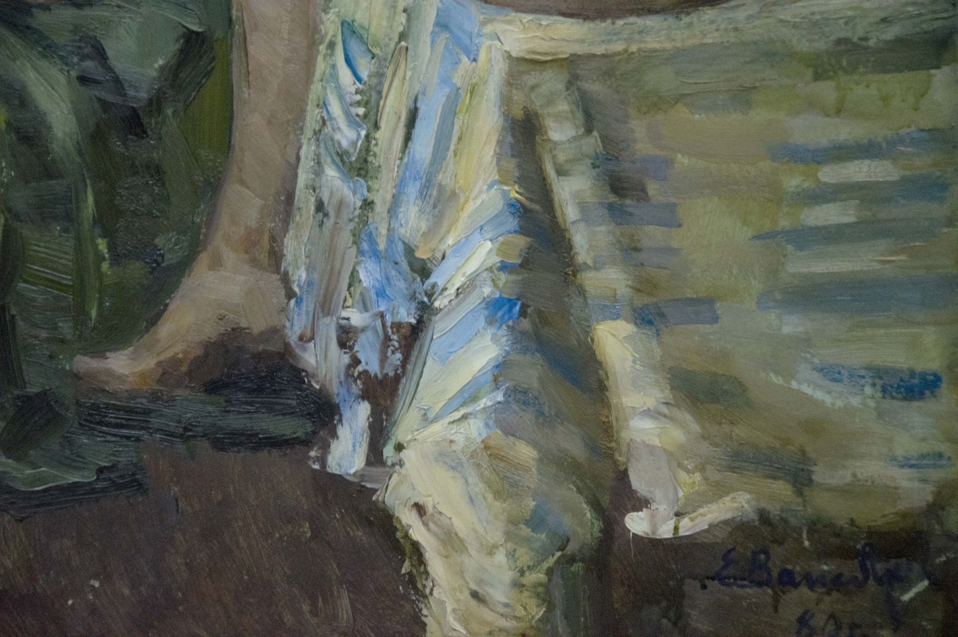 About the artist: Born May 11, 1922 in the city of Kiev. He graduated from the Kiev Art School (1941) and the Kiev Art Institute (1946-1952). Specialty teachers - K. Eleva, I. Shtilman, O. Shovkunenko, K. Trofimenko. Painter. He worked in the industry of easel painting, a representative of the creative style of socialist realism. Member of the Union of Artists of Ukraine (1965). Member of World War II. He worked as the head of the art studio at the Kiev House of Culture of food industry workers (1954-1961). Participated in exhibitions: republican (1957), all-union (1961). Major works: “Graduate” (1957); “Subbotnik” (1963); “Chefs have arrived” (1964 - 1965); "In the Carpathians" (1967); “Violin sketch” (1968), “Mechanic Petya” (1956), “Graduate” (1957), “Countrymen” (1963), “Celebration of the Shevchenkovsky anniversary in Krakow in 1914.” (1964), “Chefs have arrived” (1965, “In the Carpathians” (1967), “Violin sketch” (1968), “By the sea” (1969), “Group portrait of the brigade of Hero of Socialist Labor M. Molodchink” (1971), “Village Council” (1972), “Soldier's Bread” (1973), “Birch Juice” (1975). He lived and worked in the city of Kiev, died on August 15, 1990.