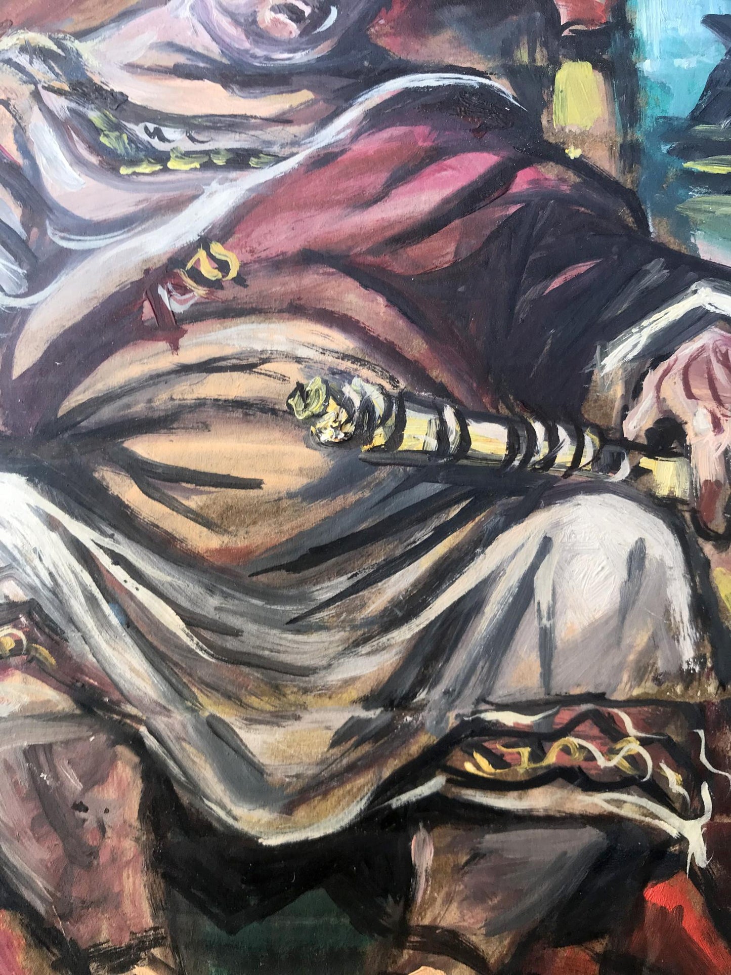 Studying at the school and passion from childhood with historical and biblical literature greatly influenced the creative manner of the artist. He works in the style of the so-called figurative art, where the main thing is the image of the human body.