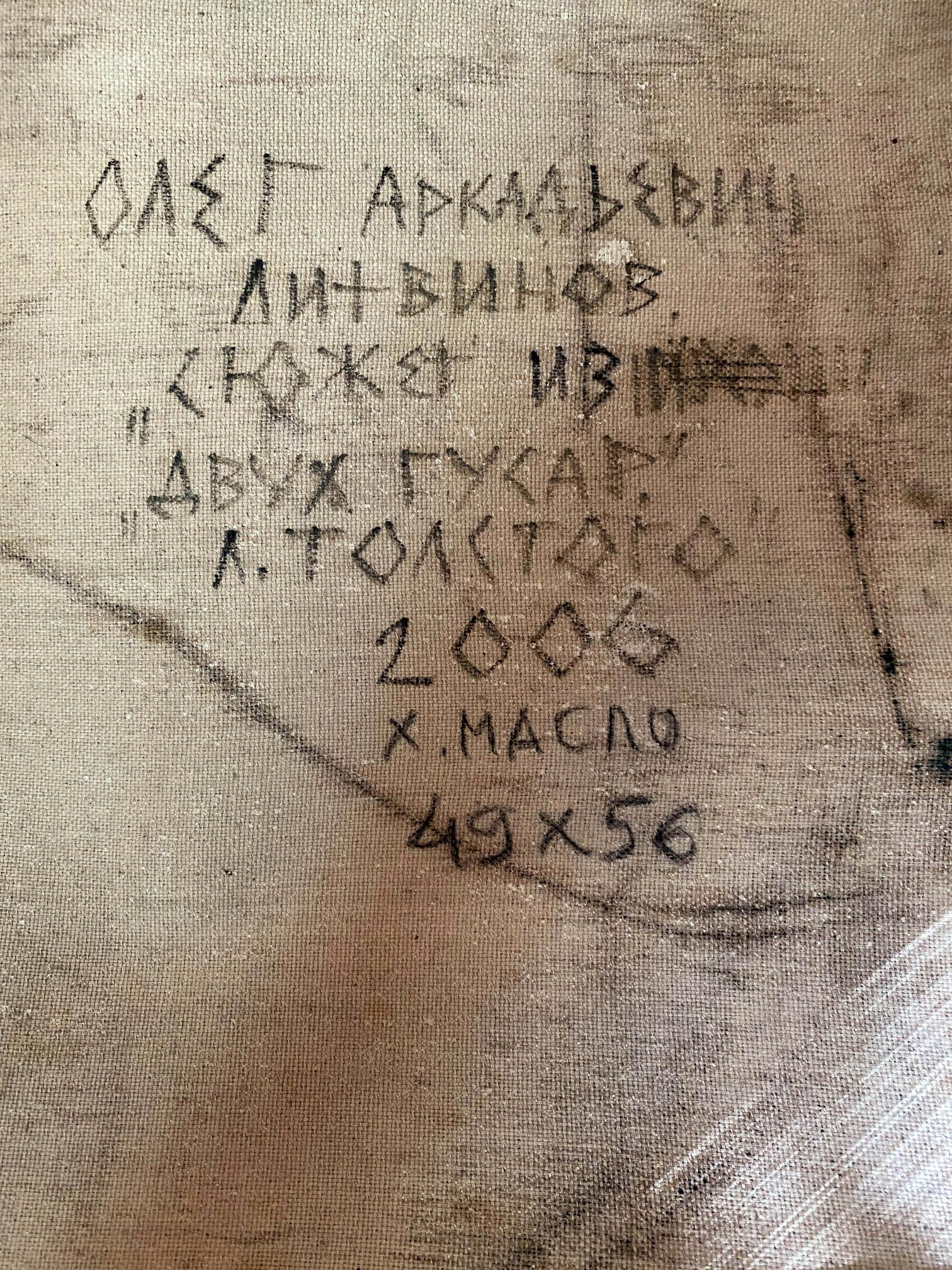 Oil painting Portrait of two hussars and Tolstoy Litvinov Oleg Arkad'yevich