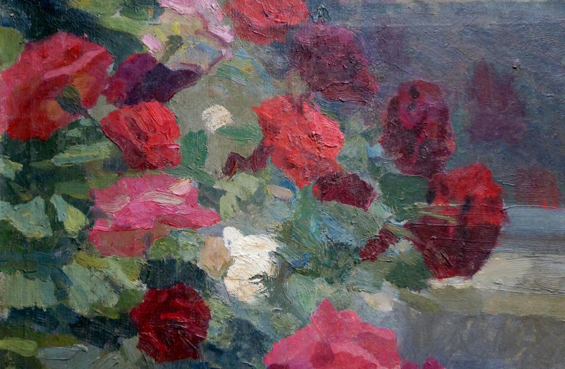 Oil painting Red and white roses Pokulity Konstantin Ivanovich