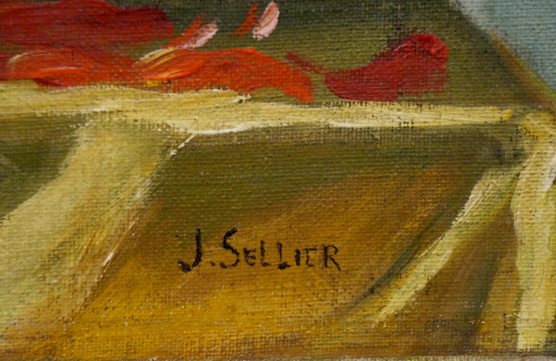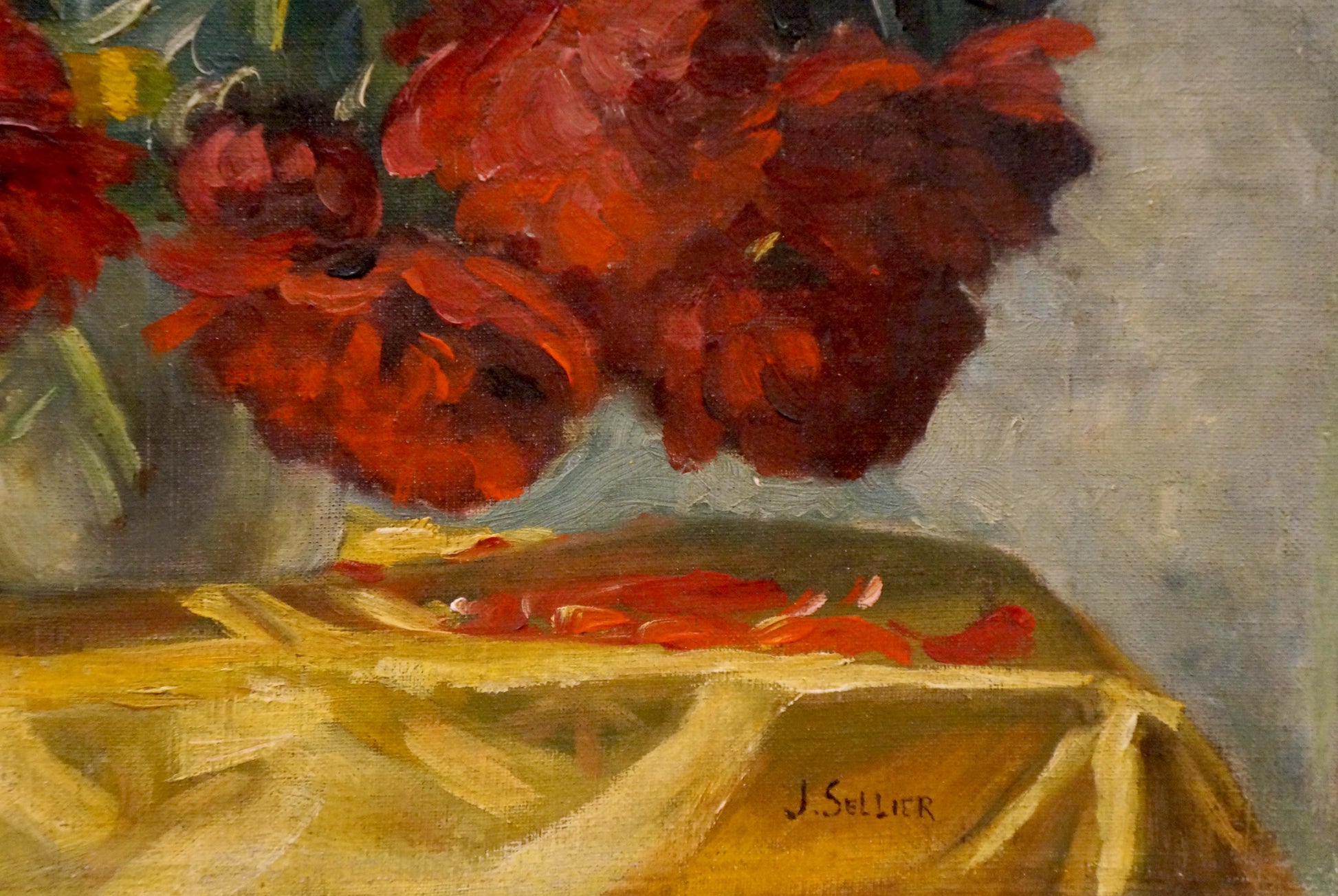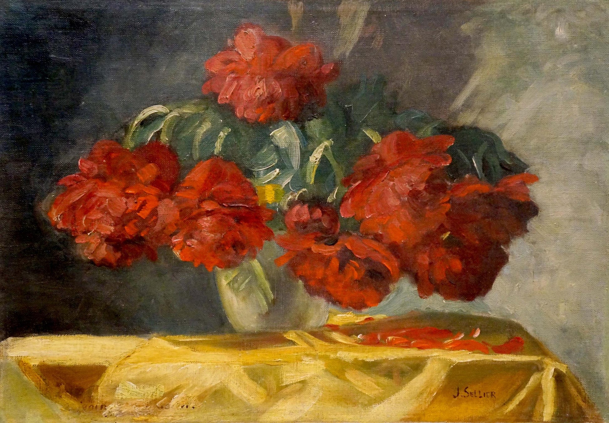 Oil painting Red flowers J. Sellier