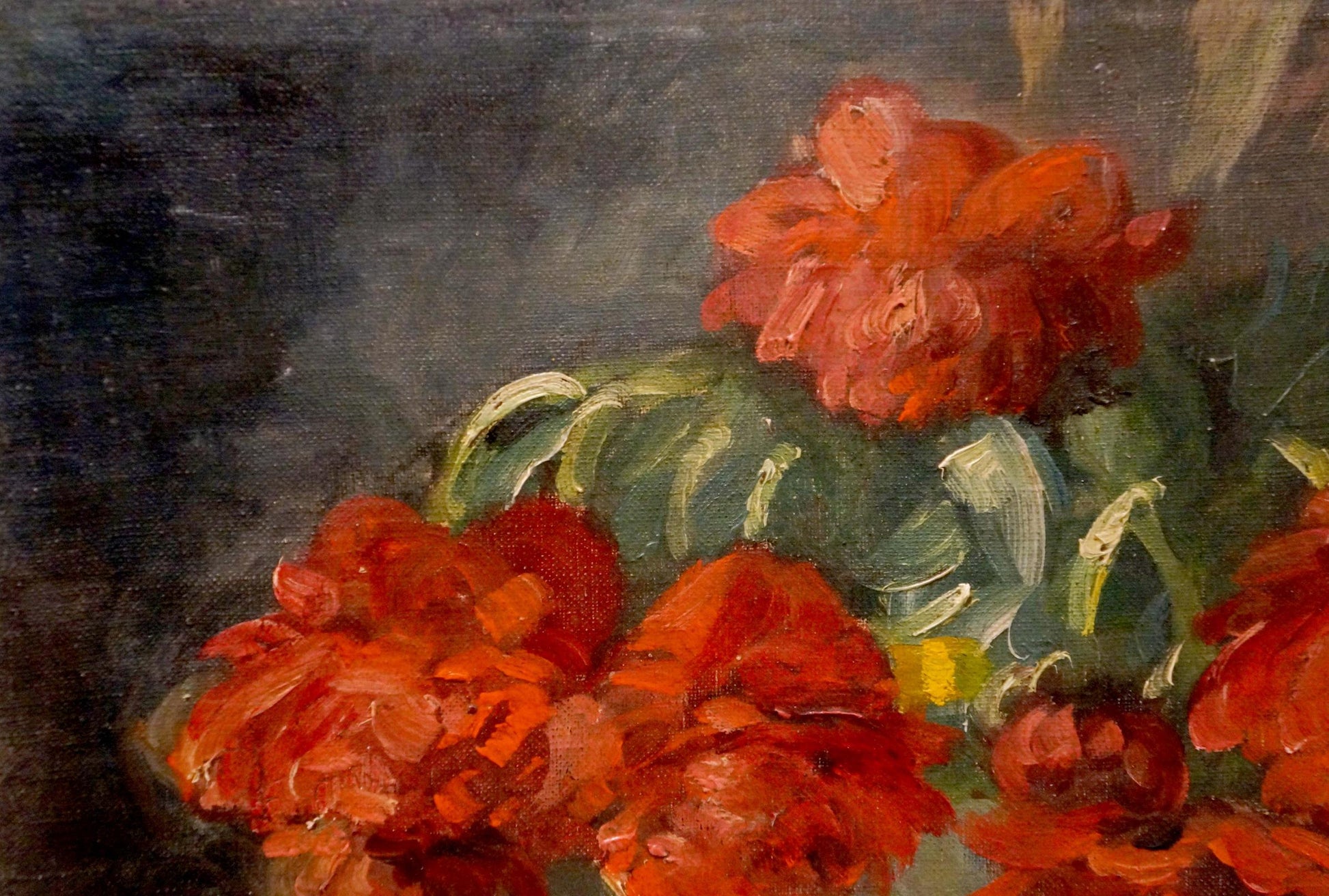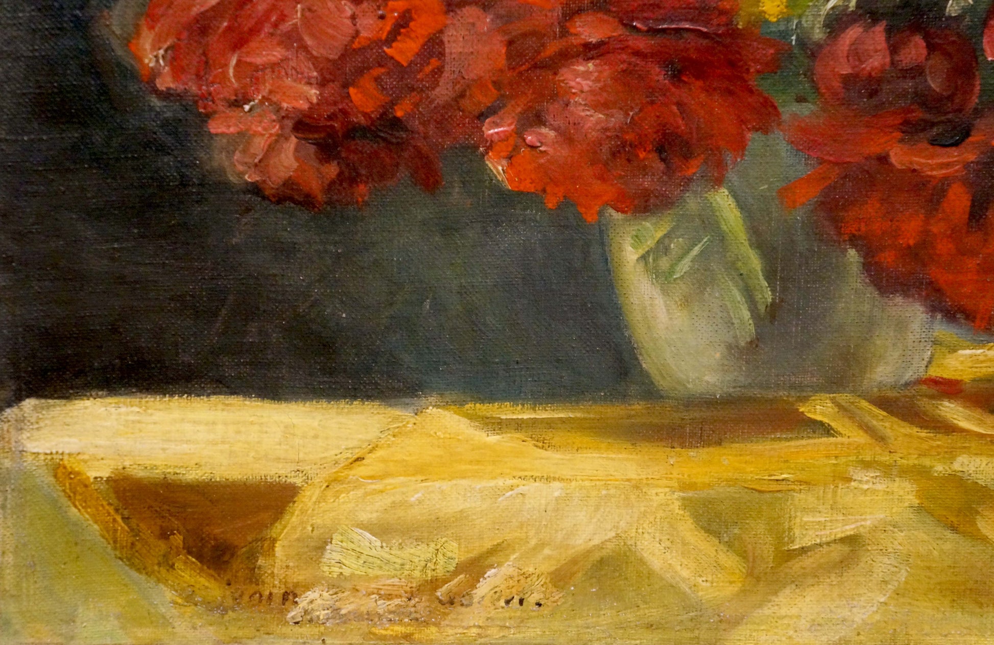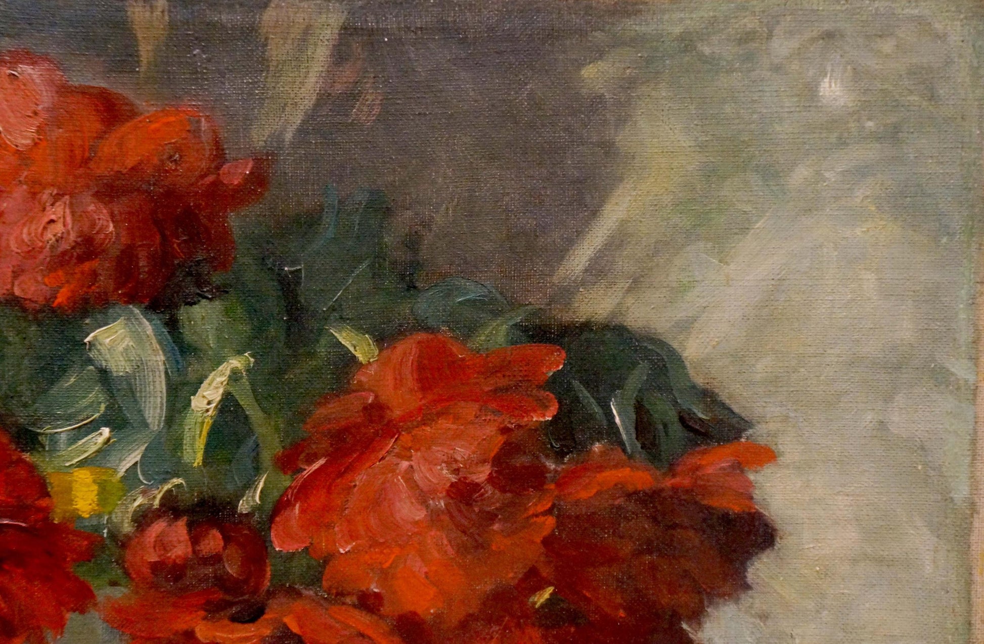 Oil painting Red flowers J. Sellier