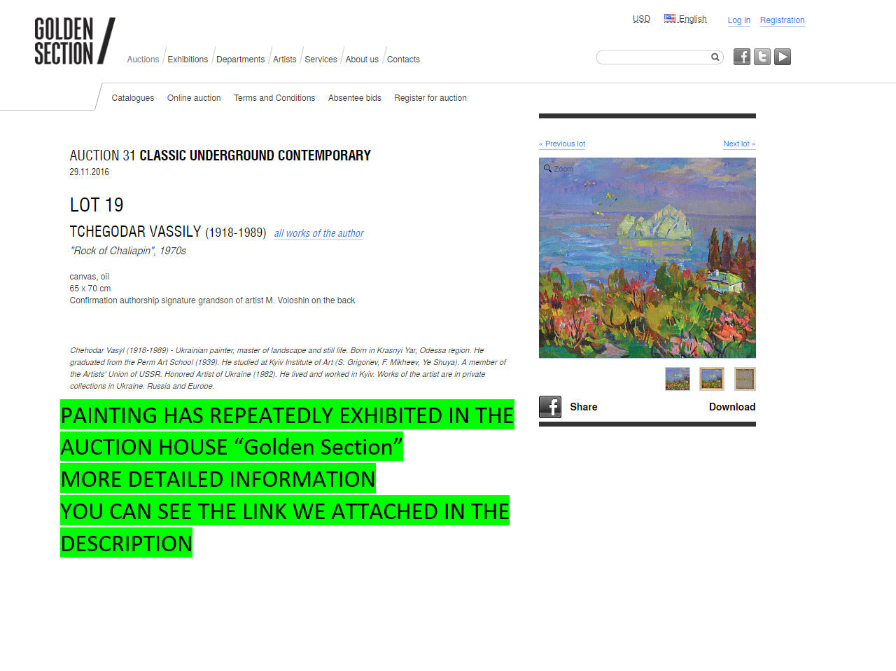 PAINTING HAS REPEATEDLY EXHIBITED IN THE AUCTION HOUSE “Golden Section”