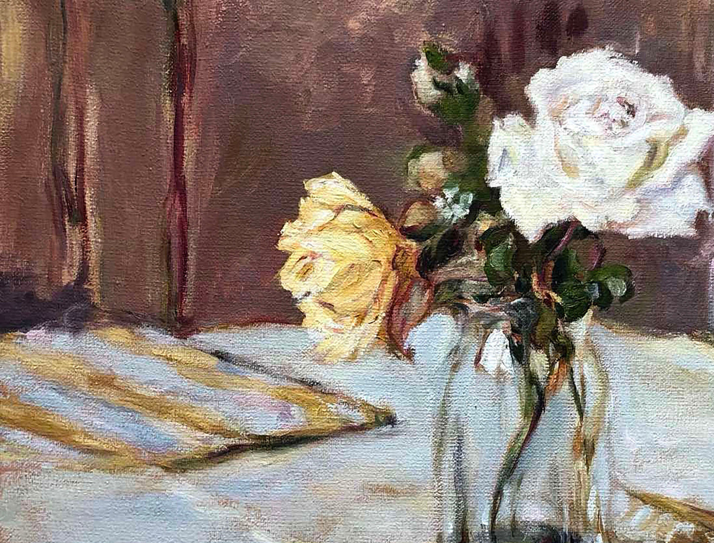 Olesia captures the peacefulness and fragility of roses in this homage to Edward Vua. The painting speaks to themes of beauty, time, and nostalgia, inviting viewers to reflect on the fleeting moments captured through art. The soft, muted palette and delicate rendering of the flowers evoke a quiet sense of reflection and timeless grace, making it an ideal choice for art lovers who appreciate classic, serene compositions.