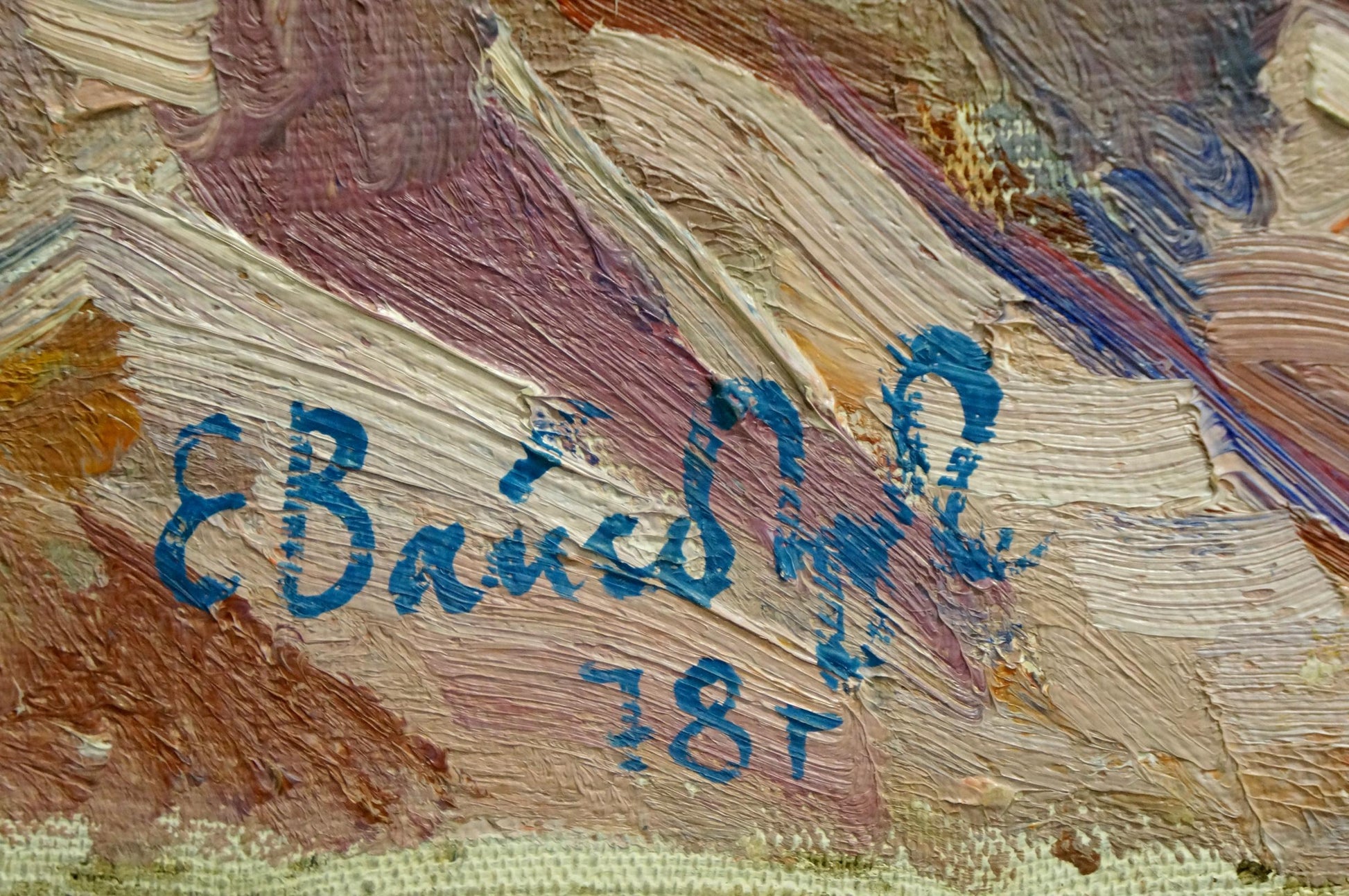 About the artist: Born May 11, 1922 in the city of Kiev. He graduated from the Kiev Art School (1941) and the Kiev Art Institute (1946-1952). Specialty teachers - K. Eleva, I. Shtilman, O. Shovkunenko, K. Trofimenko. Painter. He worked in the industry of easel painting, a representative of the creative style of socialist realism. Member of the Union of Artists of Ukraine (1965). Member of World War II. He worked as the head of the art studio at the Kiev House of Culture of food industry workers (1954-1961). Participated in exhibitions: republican (1957), all-union (1961). Major works: “Graduate” (1957); “Subbotnik” (1963); "Chefs have arrived" (1964 - 1965); "In the Carpathians" (1967); “Violin sketch” (1968), “Mechanic Petya” (1956), “Graduate” (1957), “Countrymen” (1963), “Celebration of the Shevchenkovsky anniversary in Krakow in 1914.” (1964), “The Chefs Came” (1965, “In the Carpathians” (1967), “Violin Etude” (1968), “By the Sea” (1969), “Group Portrait of the Brigade of Hero of Socialist Labor M. Molodchink” (1971), “Village Council” (1972), “Soldier's Bread” (1973), “Birch Juice” (1975). He lived and worked in the city of Kiev, died on August 15, 1990.