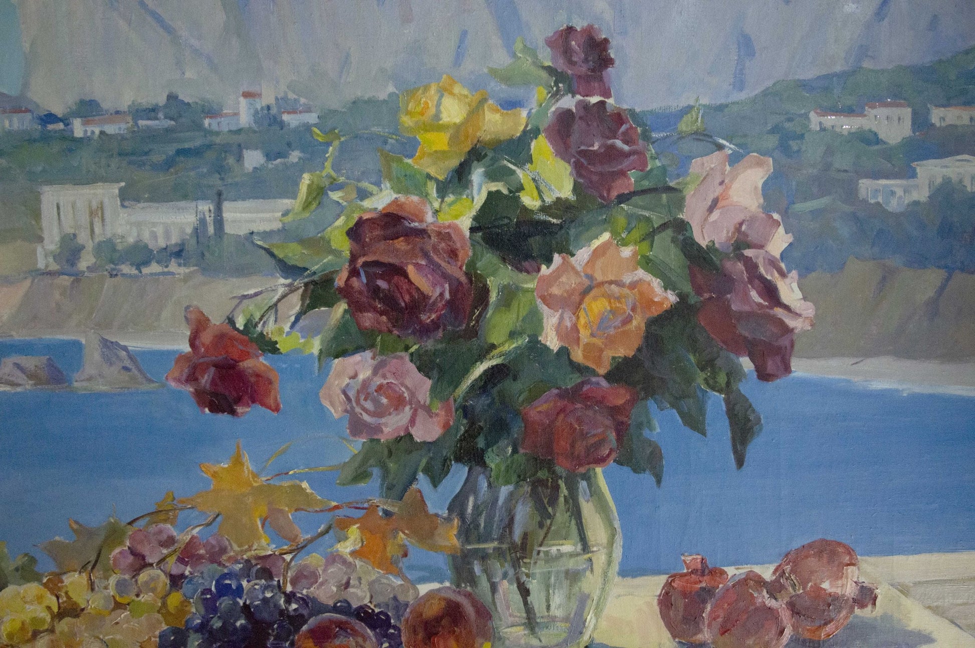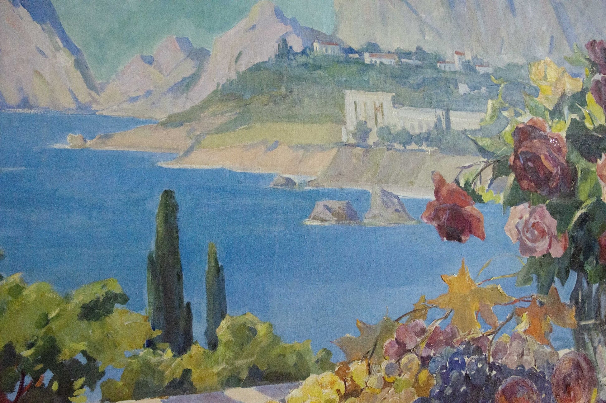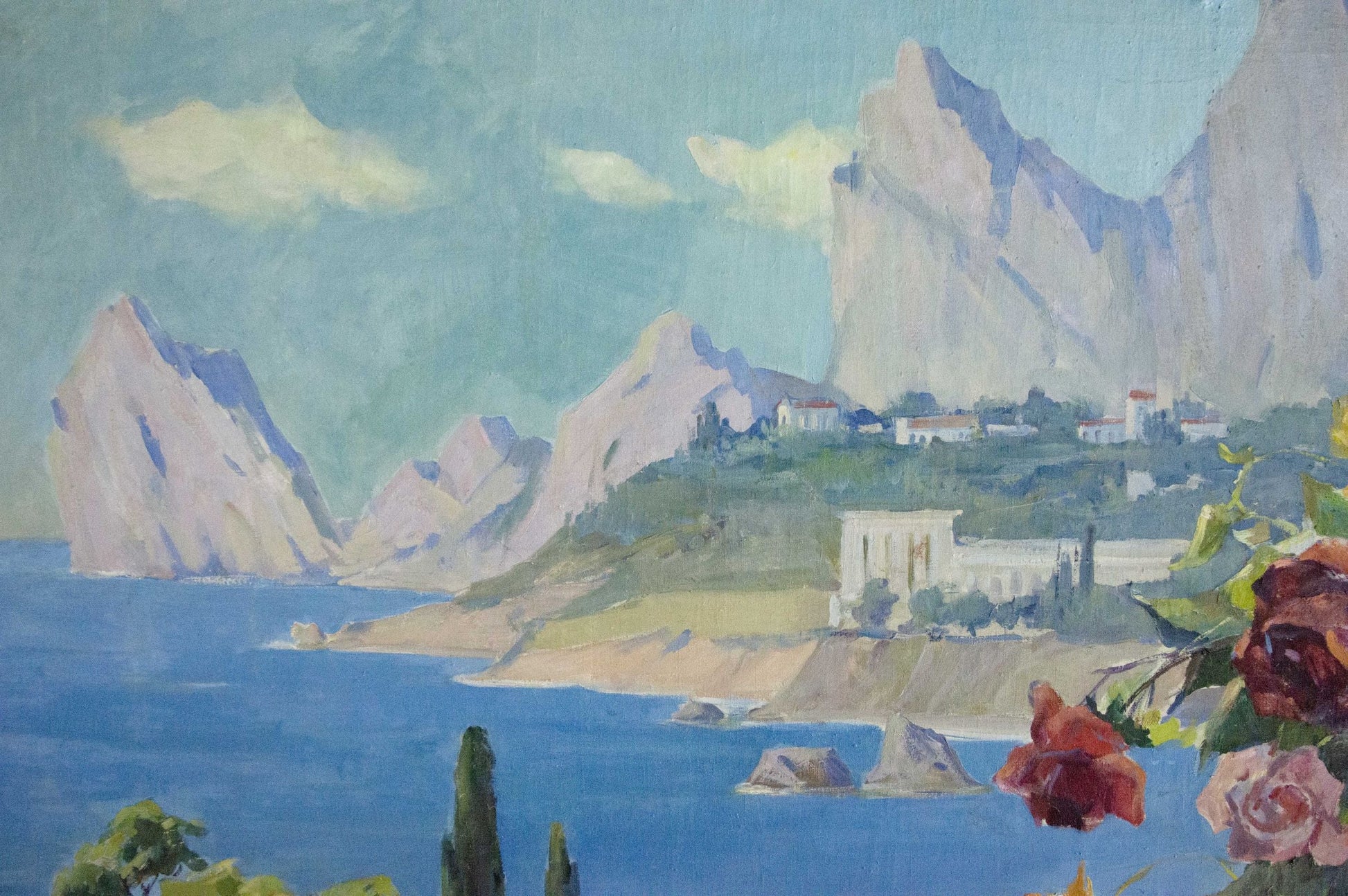 About the artist: Famous Ukrainian artist, master of landscape and still life, People's Artist of Ukraine since 1985 In 1936 she graduated from the Astrakhan Art College. She studied with academician P. Vlasov. In the years 1935-1938. - worked in the partnership “Artist” in Astrakhan. In the years 1938-1940. - worked in a workshop at the House of Arts in Leningrad. Since 1944 - member of the USSR Union of Artists. In 1950-1972 - Board member of the Crimean branch of the Union of Artists of the Ukrainian SSR. Personal exhibitions: Yalta, Simferopol, Kiev, Moscow, Astrakhan, Paris. The works of V.P. Tsvetkova are in the National Art Museum of Ukrainian Art in Kiev, in Kharkov, Sumy, Simferopol, Astrakhan Art Museums. The artworks were purchased for private collections in Germany, USA, France, England, Israel, Turkey, Italy.